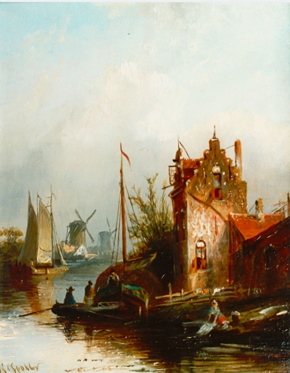 Jacob Jan Coenraad Spohler bekam Unterricht von seinem Vater Jan Jacob und erwies sich als ein guter Schüler da er sich auch spezialisierte auf die Landschaft, wie Sommer- und Winteransichten. Vor allen Dingen malte er Eisvergnügen mit vielen Figuren: beschneite Ländereien den spiegelnden Eisflächen entlang mit gleitenden Schlittshuhläufern und einer Koek-en-Zopie-Bude , in endlosen Variationen dargestellt. J.J.C. Spohler wohnte und arbeitete in Amsterdam und hatte regelmässig Ausstellungen, unter anderem bei den Tentoonstellingen van Levende Meesters.