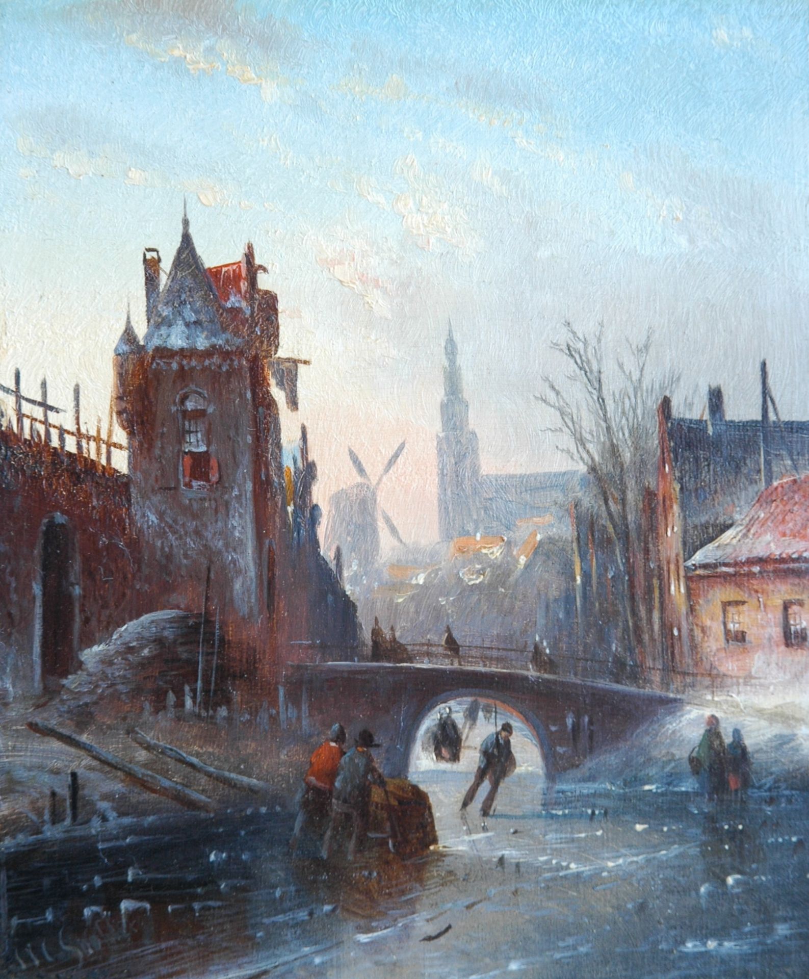 Jacob Jan Coenraad Spohler Kunstwerk • Gemälde • zuvor zu verkaufen A town view with skaters