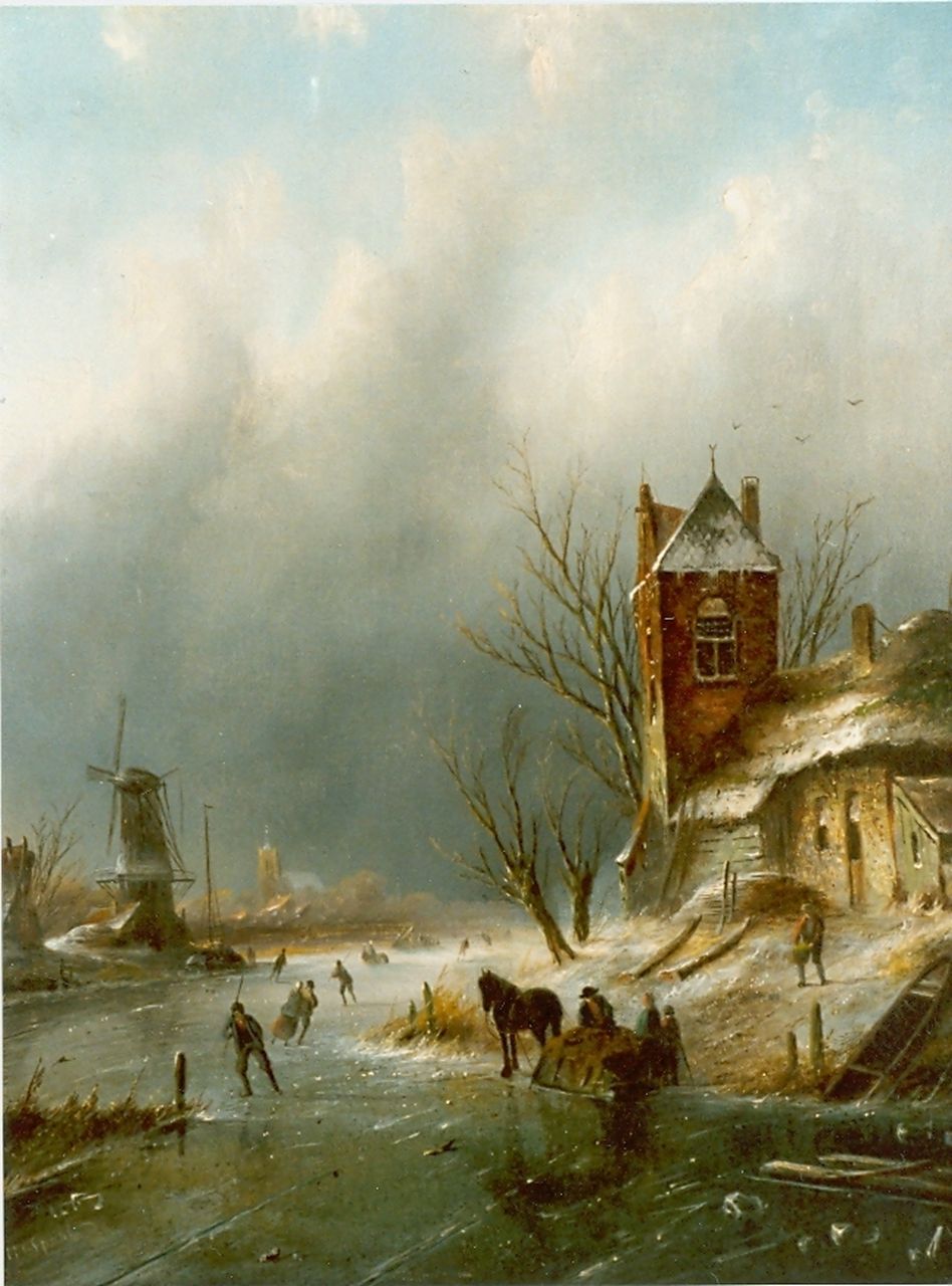 Jacob Jan Coenraad Spohler Kunstwerk • Gemälde • zuvor zu verkaufen A winter landscape with skaters on the ice