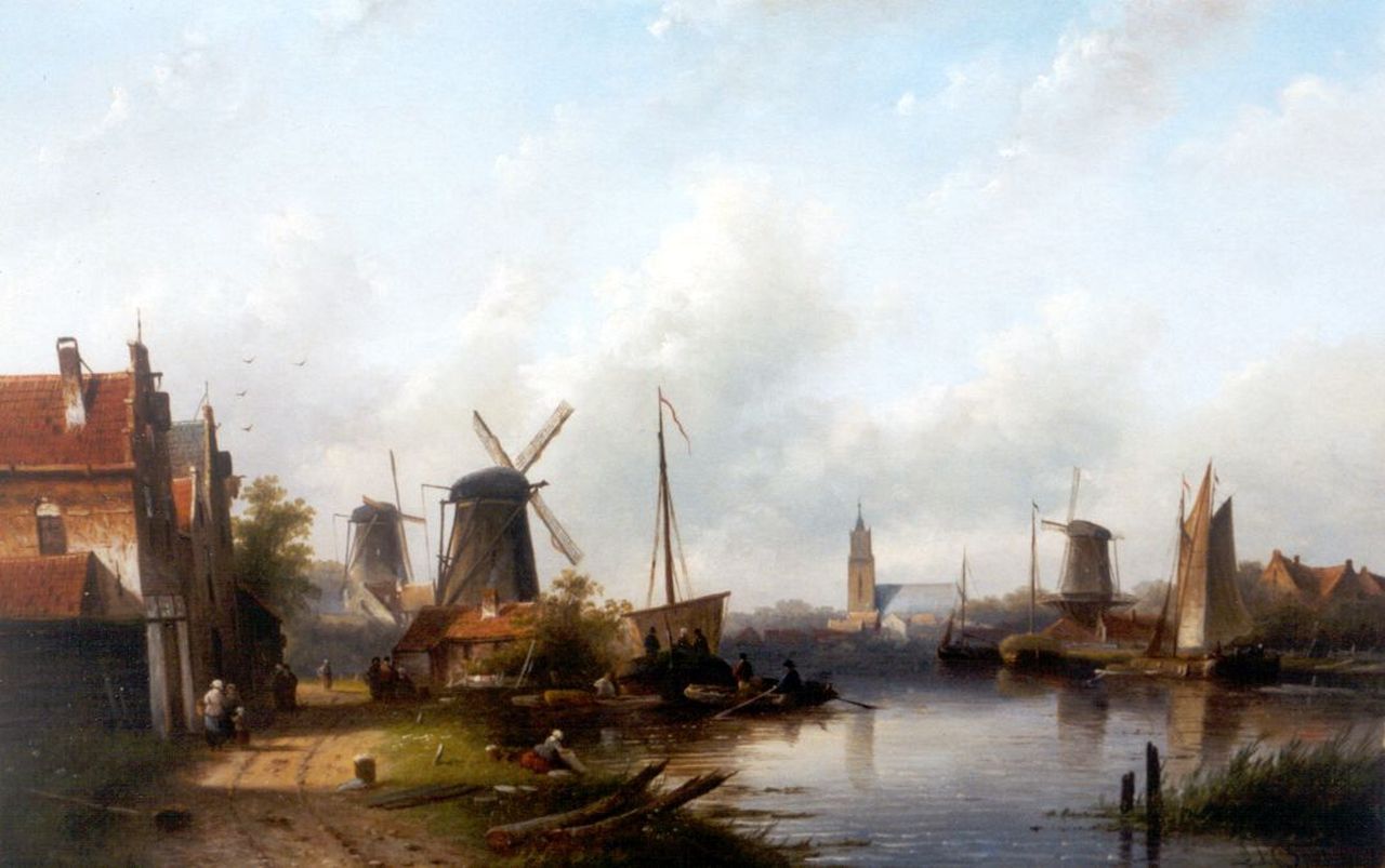 Jacob Jan Coenraad Spohler Kunstwerk • Gemälde • zuvor zu verkaufen Daily activities along a canal