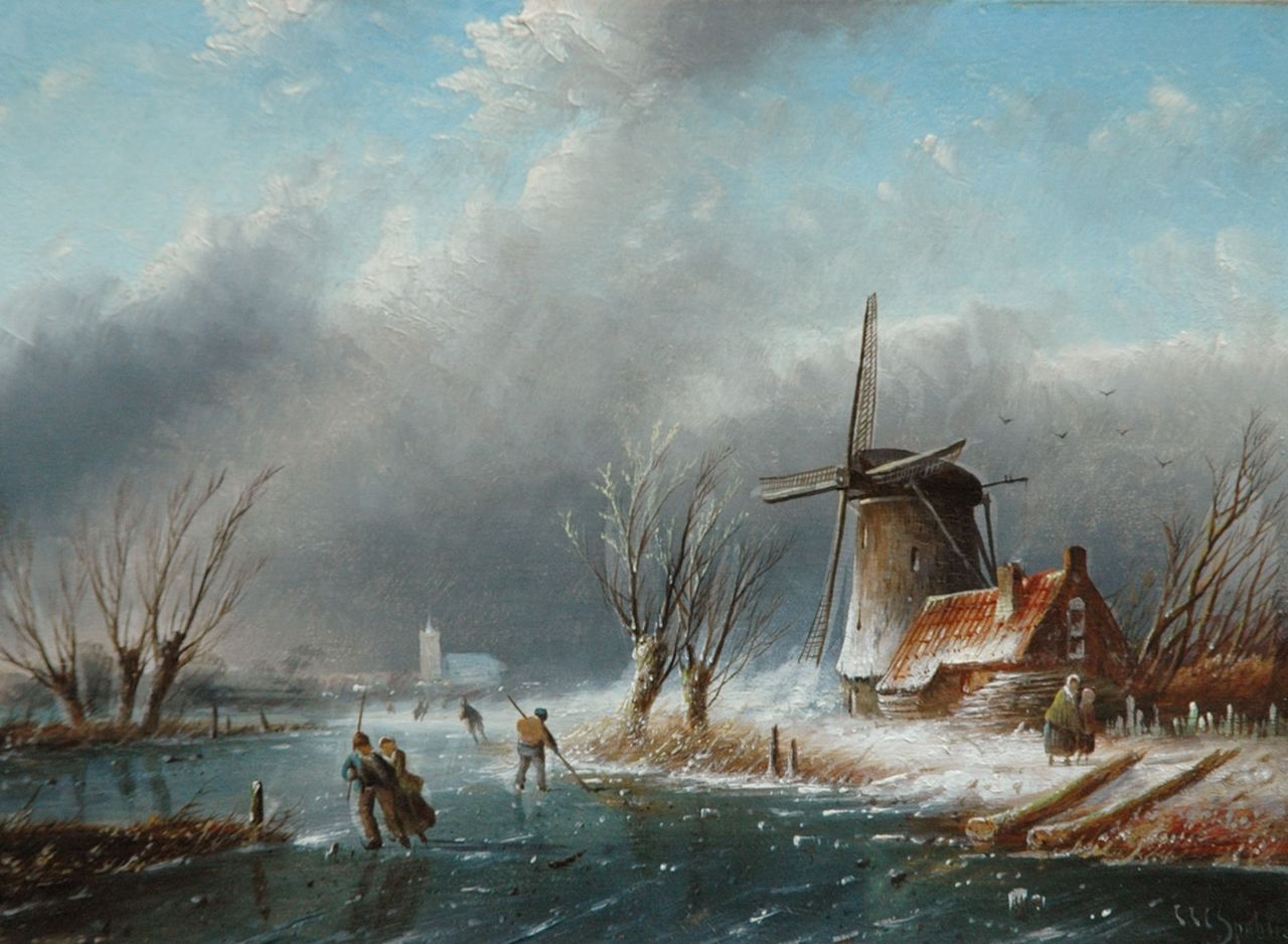 Jacob Jan Coenraad Spohler | Winterliches Eisvergnügen, Öl auf Leinwand, 44,0 x 67,1 cm, Unterzeichnet u.l.