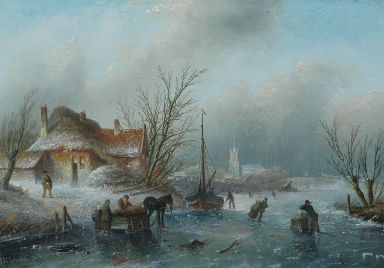 Jacob Jan Coenraad Spohler | Winterliches Eisvergnügen, Öl auf Leinwand, 44,0 x 67,1 cm, Unterzeichnet u.l.