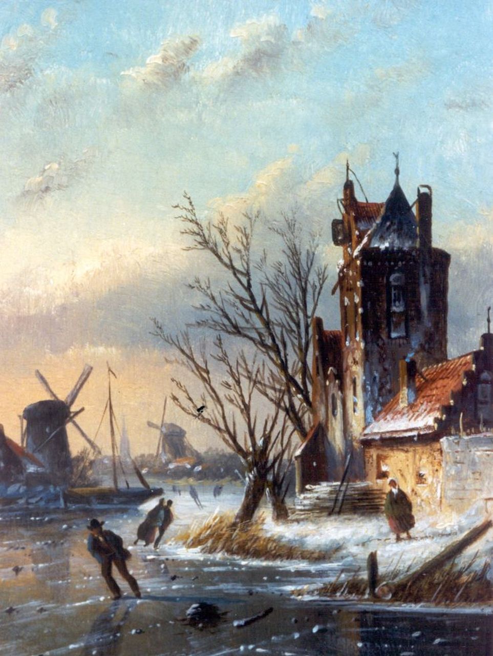 Jacob Jan Coenraad Spohler Kunstwerk • Gemälde • zuvor zu verkaufen Skaters on the river Amstel