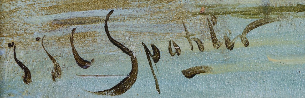 Jacob Jan Coenraad Spohler bekam Unterricht von seinem Vater Jan Jacob und erwies sich als ein guter Schüler da er sich auch spezialisierte auf die Landschaft, wie Sommer- und Winteransichten. Vor allen Dingen malte er Eisvergnügen mit vielen Figuren: beschneite Ländereien den spiegelnden Eisflächen entlang mit gleitenden Schlittshuhläufern und einer Koek-en-Zopie-Bude , in endlosen Variationen dargestellt. J.J.C. Spohler wohnte und arbeitete in Amsterdam und hatte regelmässig Ausstellungen, unter anderem bei den Tentoonstellingen van Levende Meesters.
