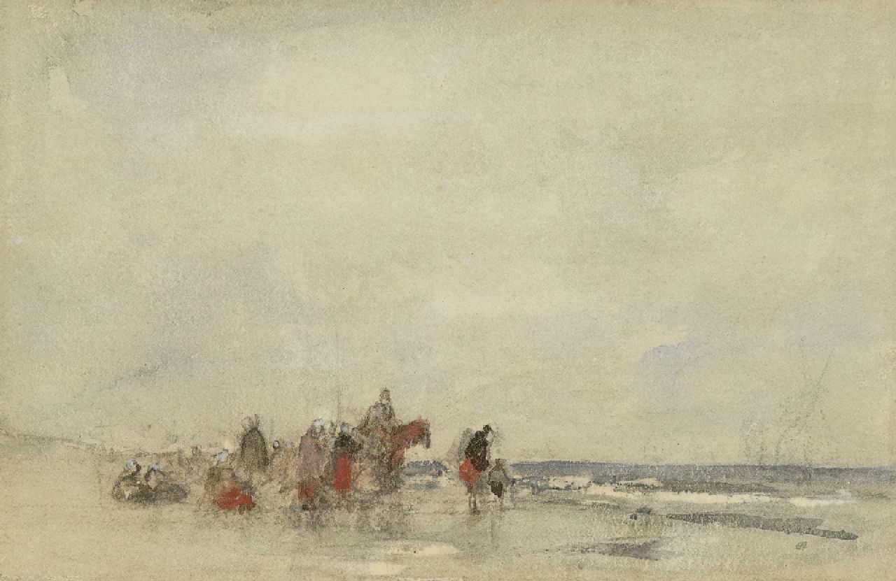 Jacob Maris Kunstwerk • Aquarell • Zeichnung • zuvor zu verkaufen Strand mit Fischerfrauen