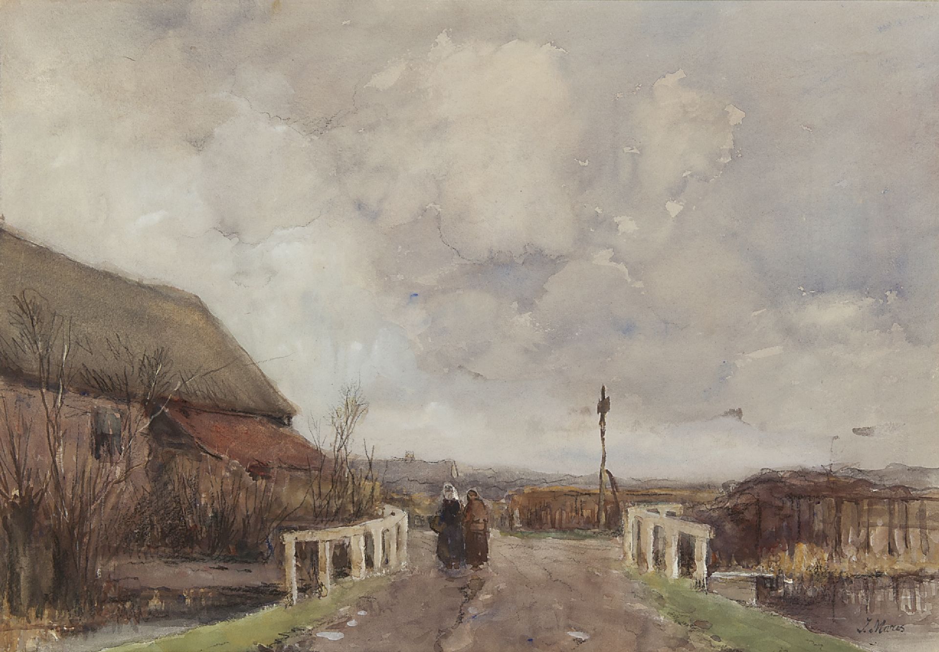 Jacob Maris Kunstwerk • Aquarell • Zeichnung • zuvor zu verkaufen Two figures in a grey landscape