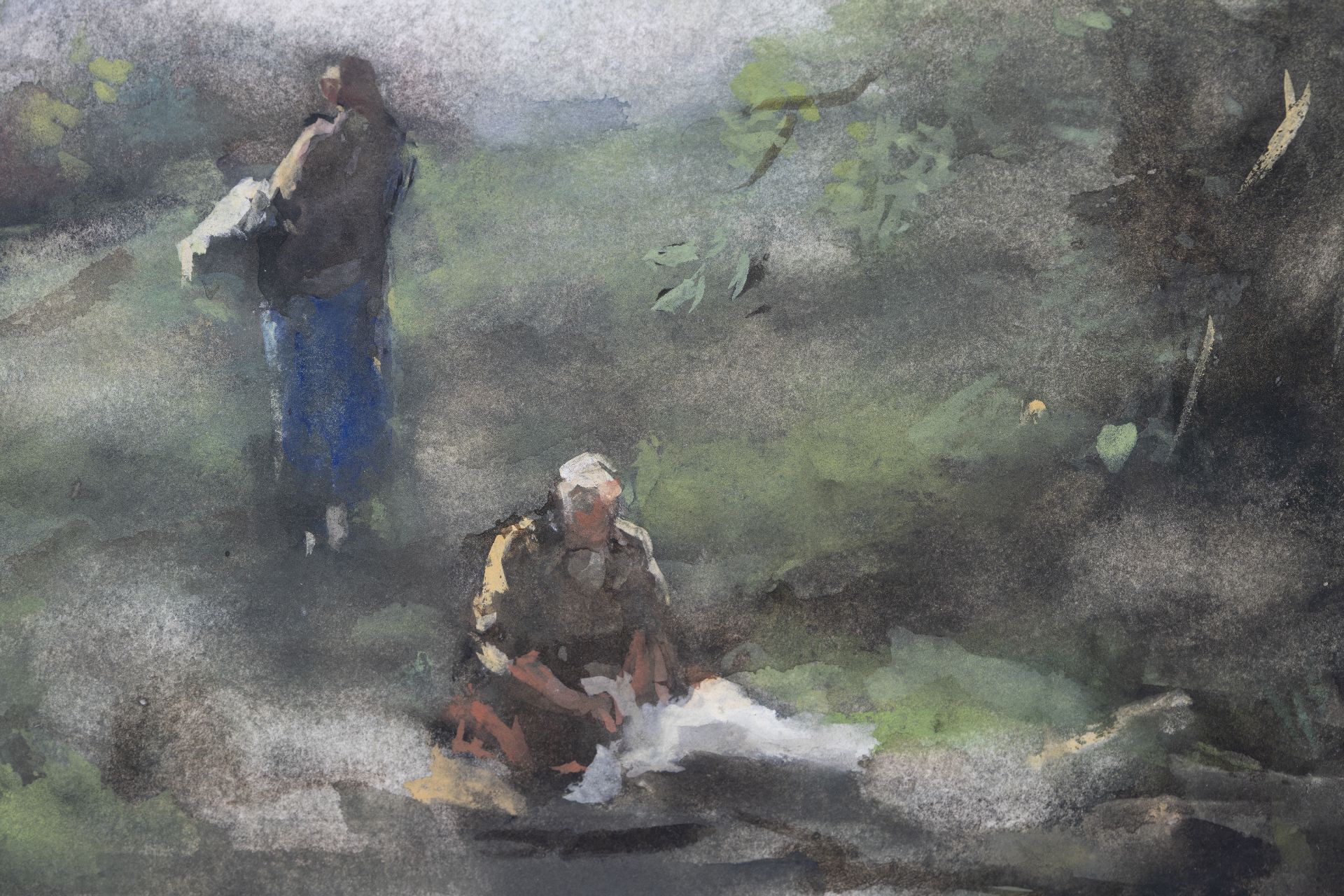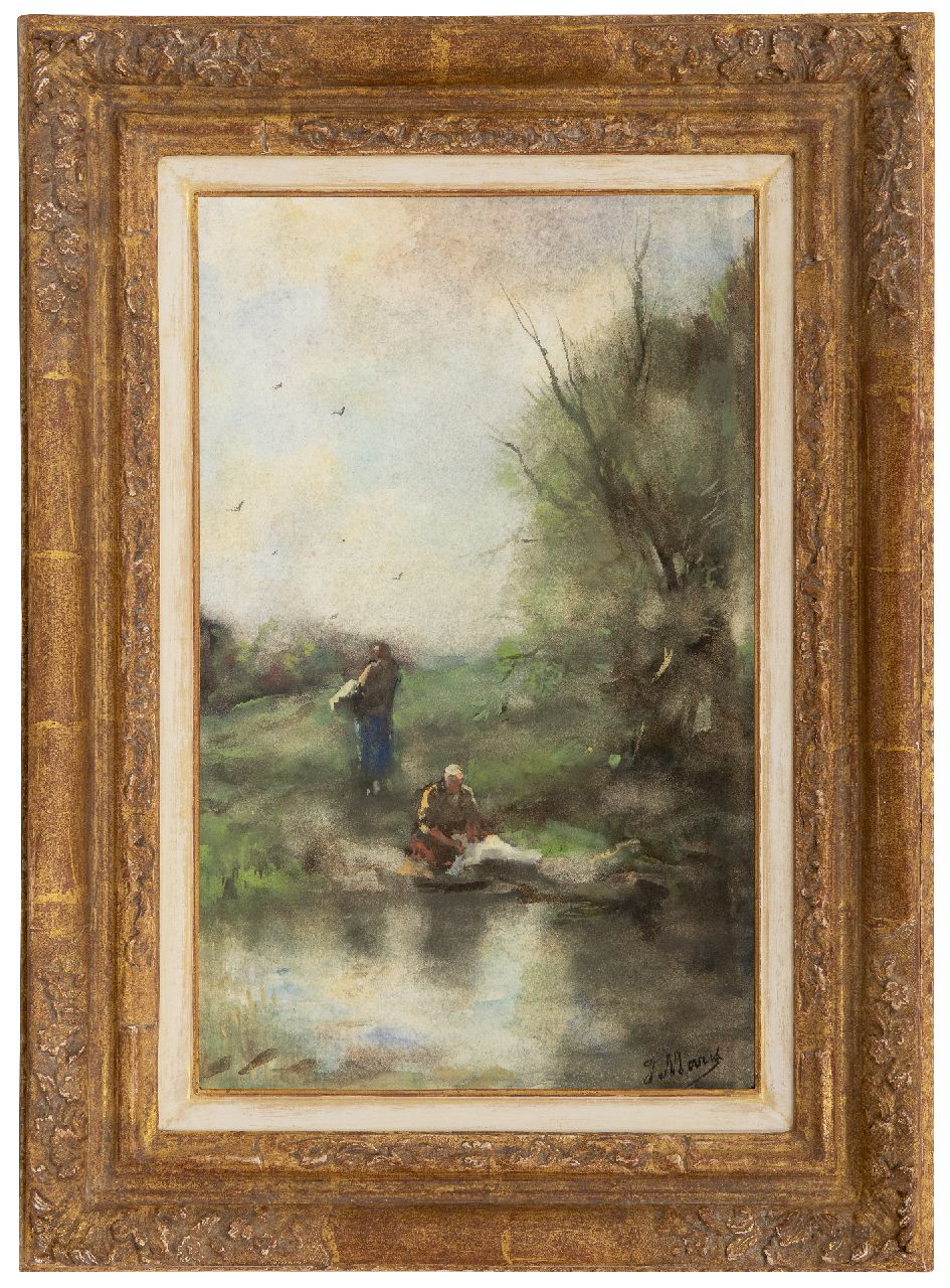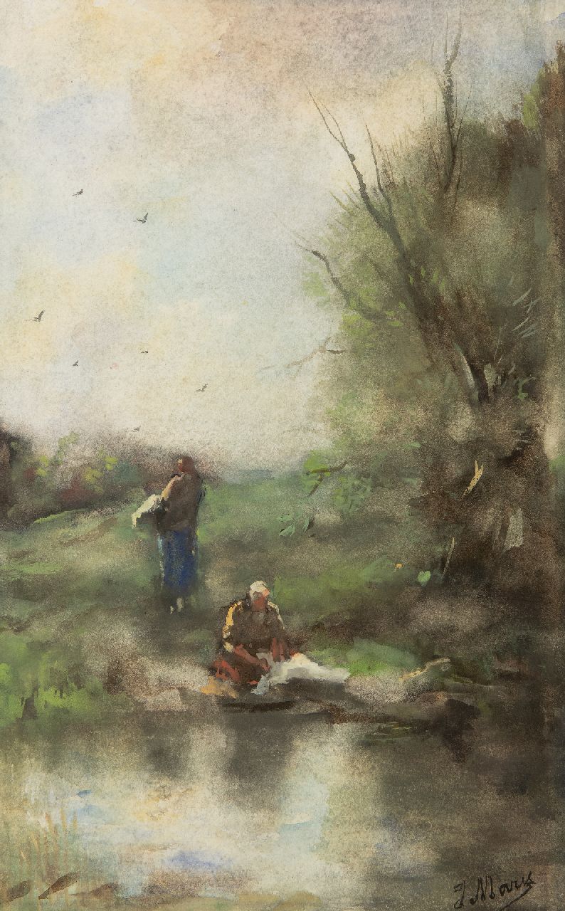 Jacob Maris Kunstwerk • Aquarell • Zeichnung • zu verkaufen Wäscherinnen am Fluss
