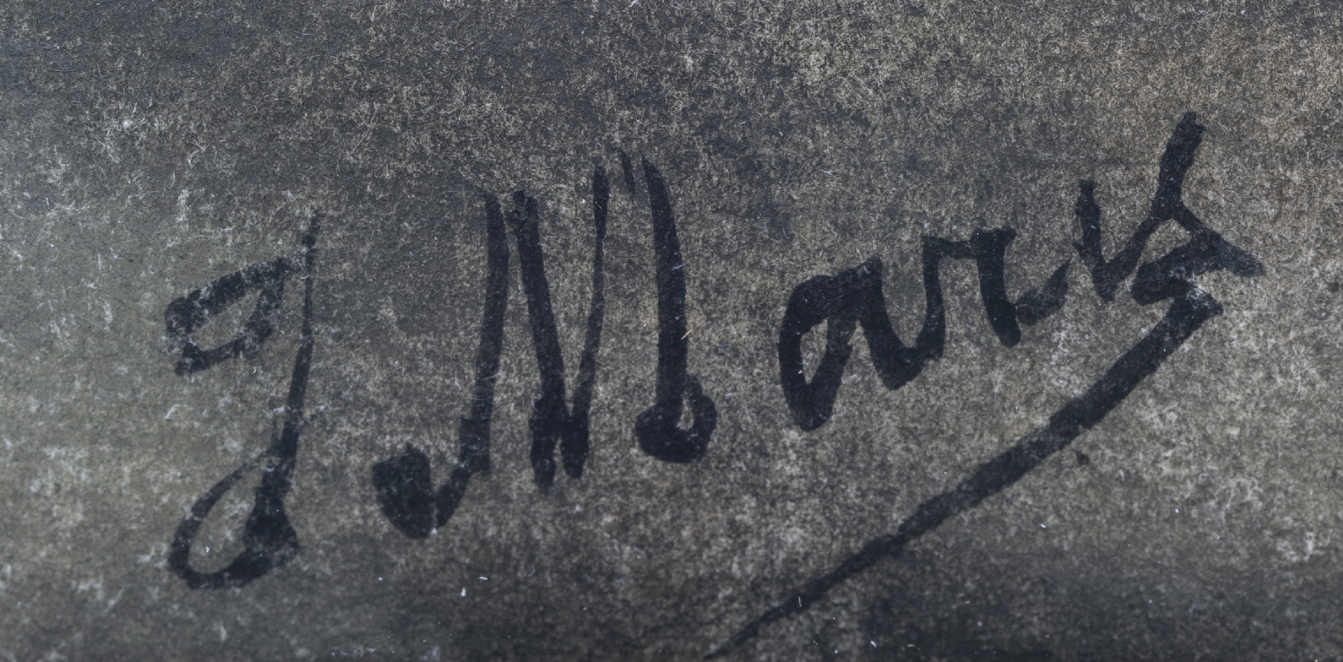 Jacob Maris war einer der wichtigsten Maler der Haager Schule. Wie kein anderer gelang es ihm, die silbergrauen Töne eines holländischen bewölkten Tages einzufangen und diese zu kombinieren mit tiefem Braun, Ochres und einem einzelnen Hauch Farbe. Er malte hauptsächlich Landschaften, Stadt- und Strandlandschaften. Unter dem Einfluss der Barbizon School arbeitete er direkt an der Natur. International hatte er großen Erfolg und seine Arbeit wurde nach Schottland und in die USA verkauft.