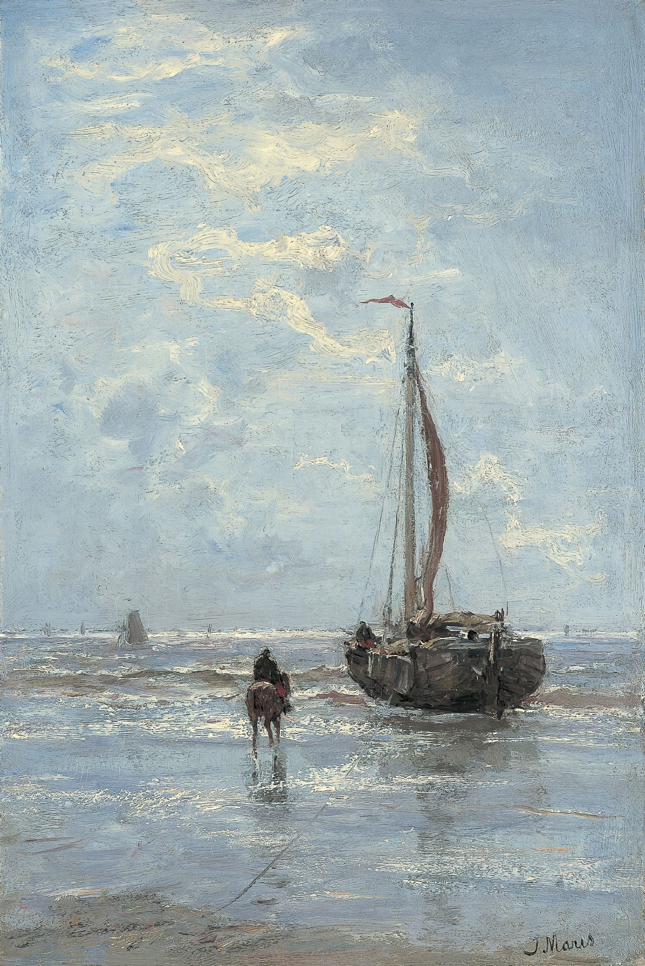 Jacob Maris Kunstwerk • Gemälde • zuvor zu verkaufen 'Bomschuit' on the beach