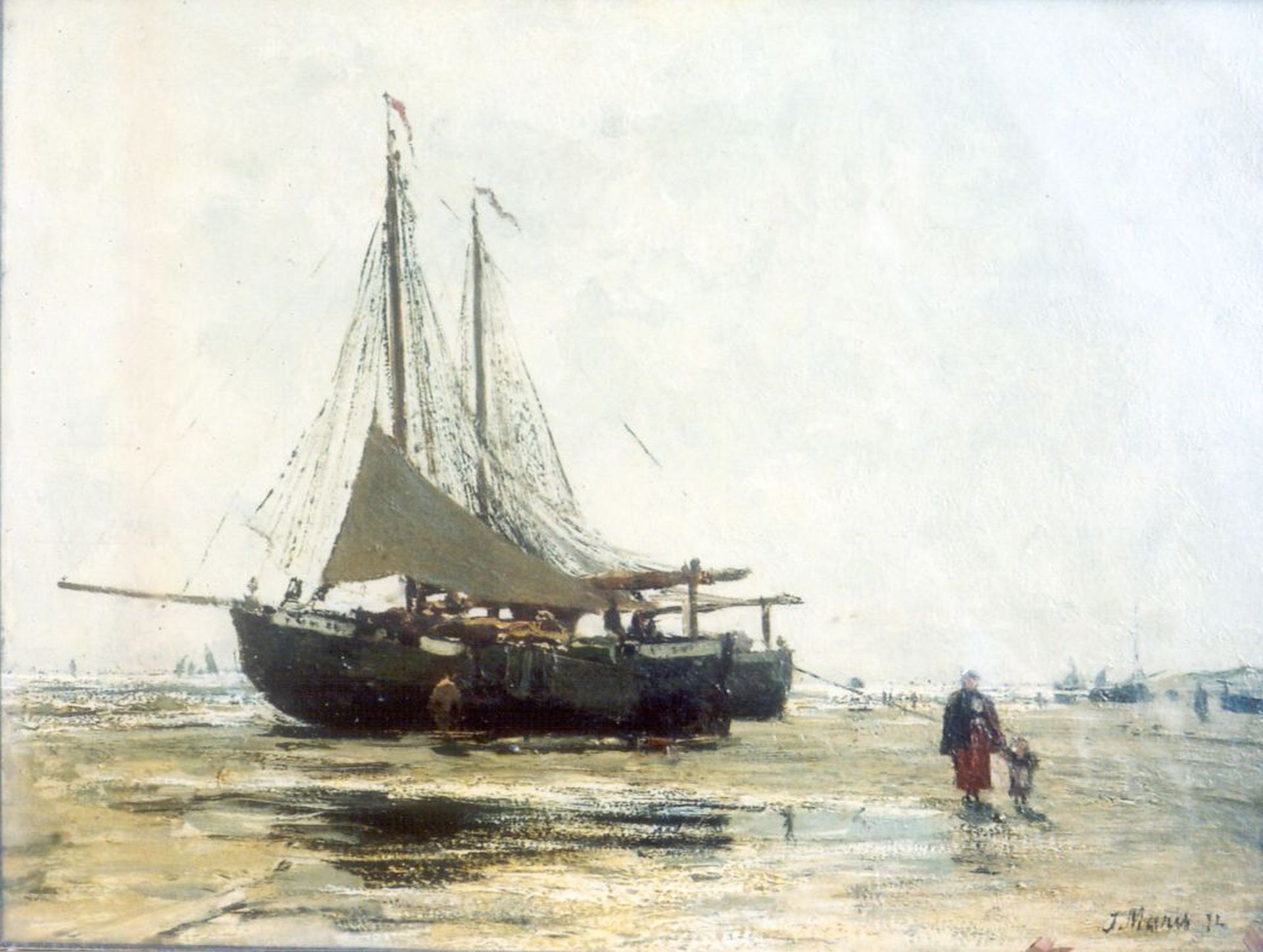 Jacob Maris Kunstwerk • Gemälde • zuvor zu verkaufen 'Bomschuiten' on the beach