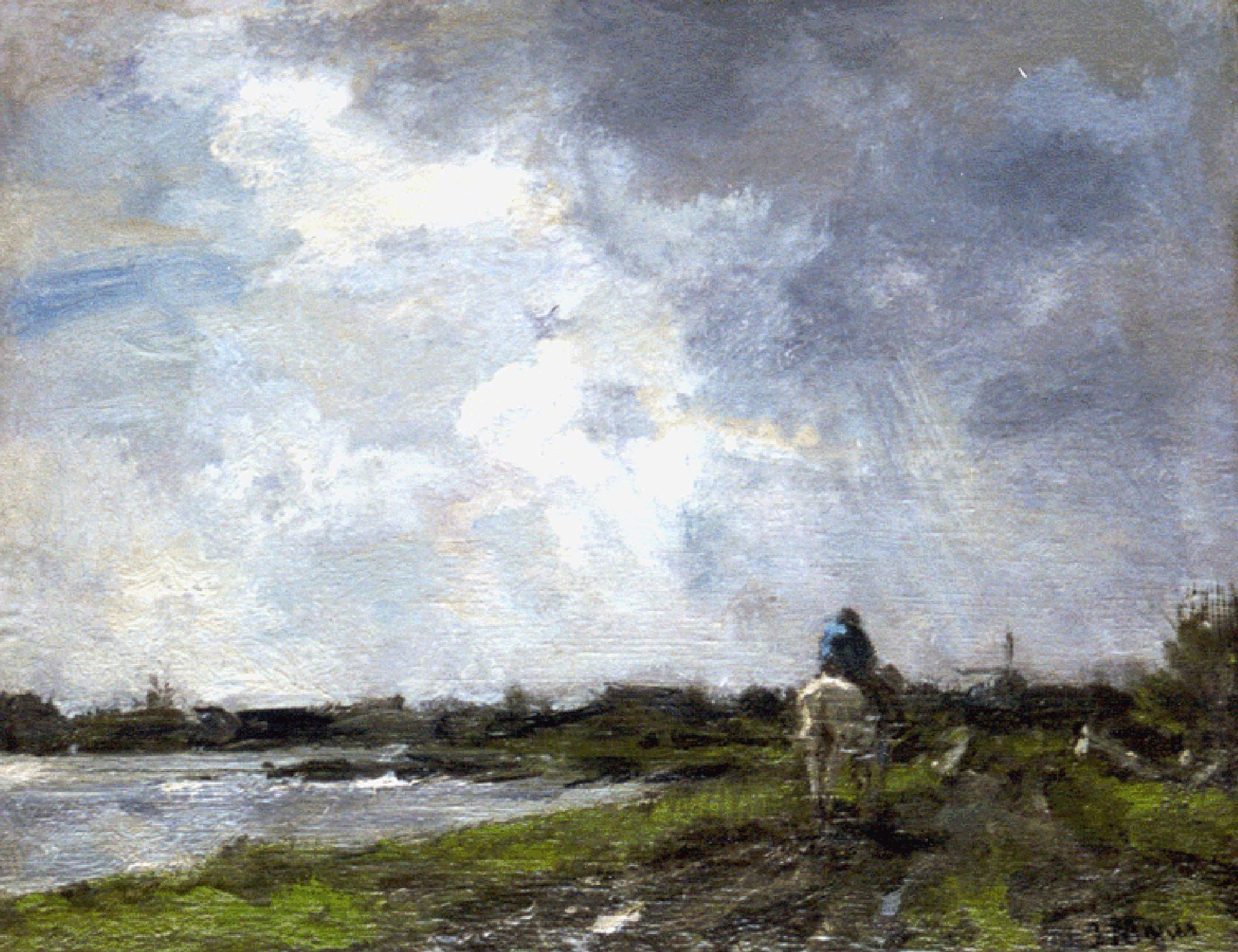 Jacob Maris war einer der wichtigsten Maler der Haager Schule. Wie kein anderer gelang es ihm, die silbergrauen Töne eines holländischen bewölkten Tages einzufangen und diese zu kombinieren mit tiefem Braun, Ochres und einem einzelnen Hauch Farbe. Er malte hauptsächlich Landschaften, Stadt- und Strandlandschaften. Unter dem Einfluss der Barbizon School arbeitete er direkt an der Natur. International hatte er großen Erfolg und seine Arbeit wurde nach Schottland und in die USA verkauft.