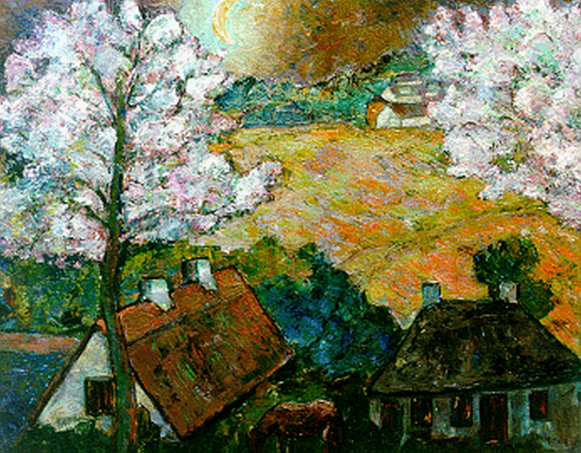Jacobus Doeser Kunstwerk • Gemälde • zuvor zu verkaufen Blossoming trees in a landscape