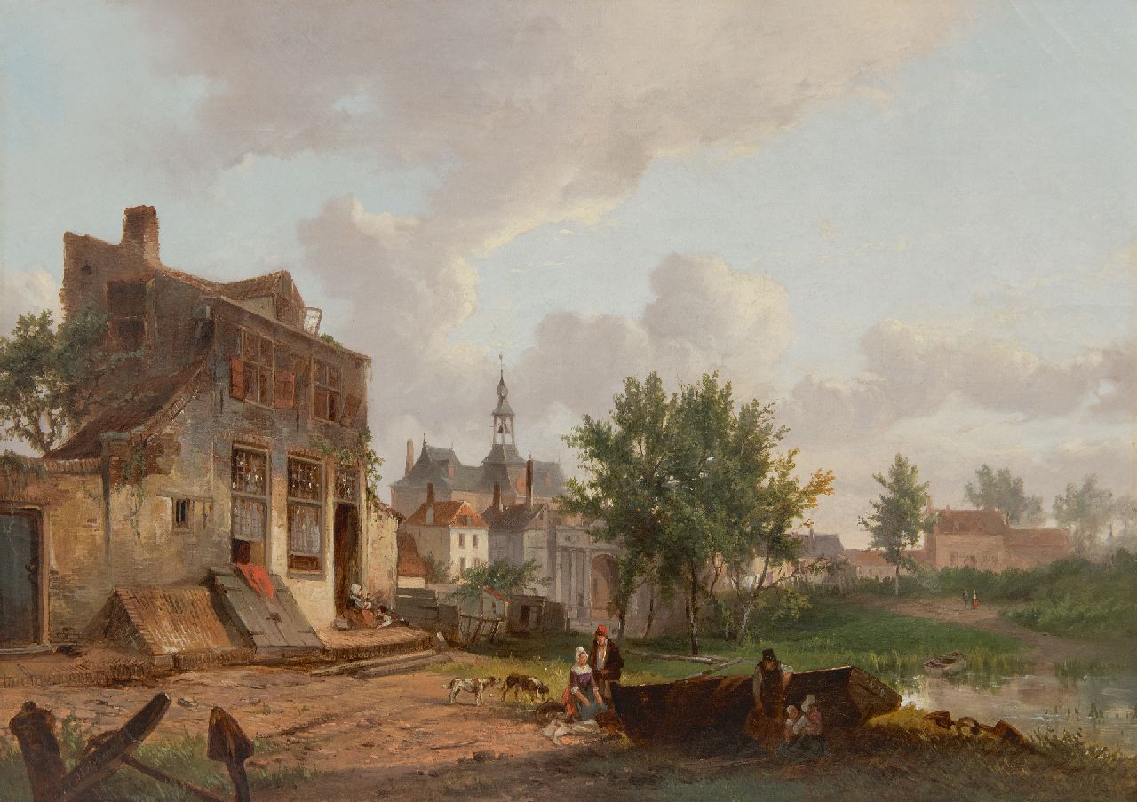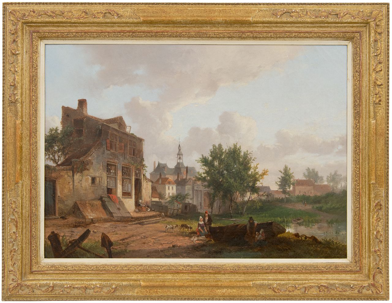 Jacobus Pelgrom Kunstwerk • Gemälde • zuvor zu verkaufen Am Rand einer holländischen Stadt