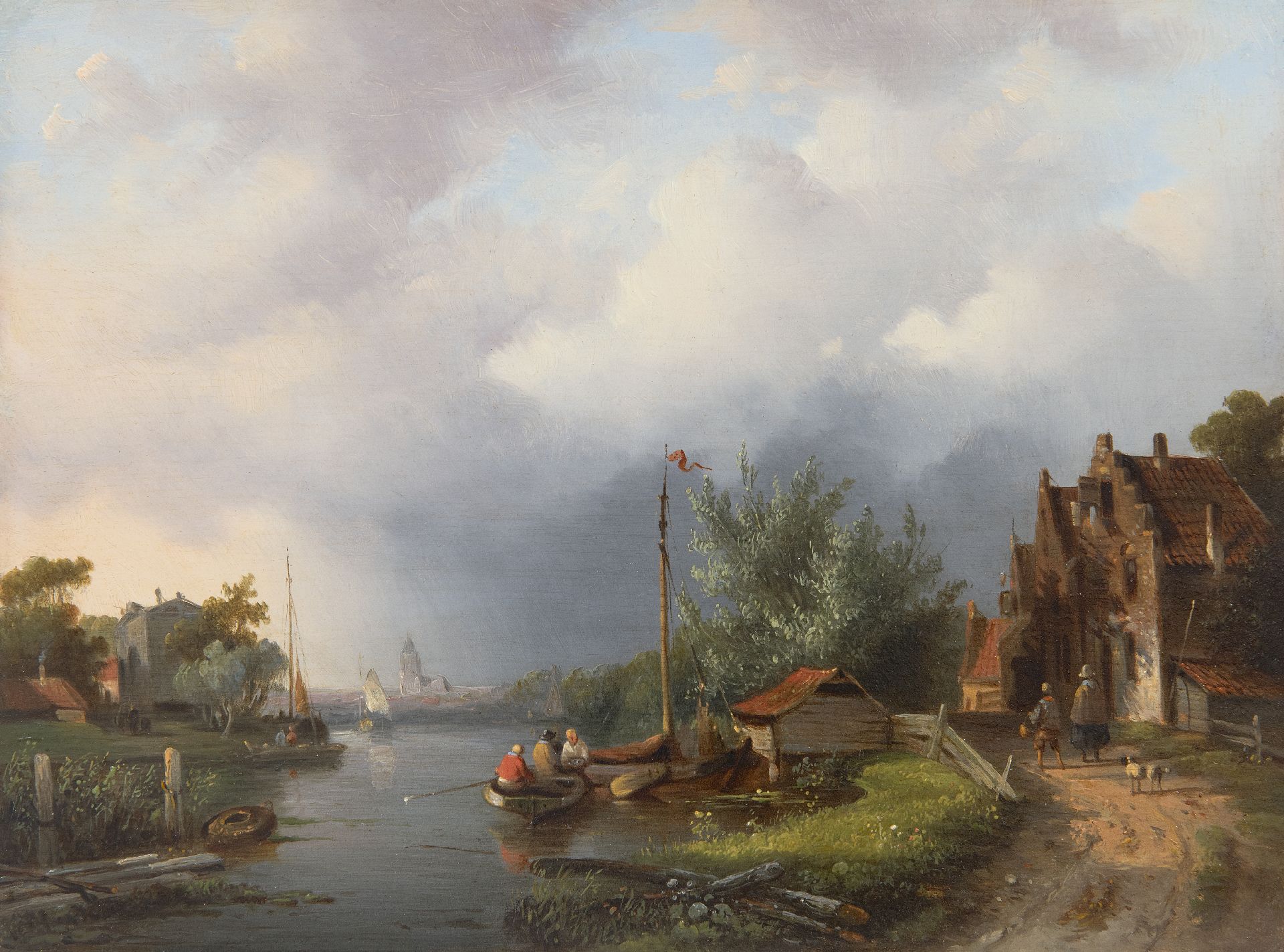 Jacobus van der Stok Kunstwerk • Gemälde • zuvor zu verkaufen Sommerdorf an einem Fluss