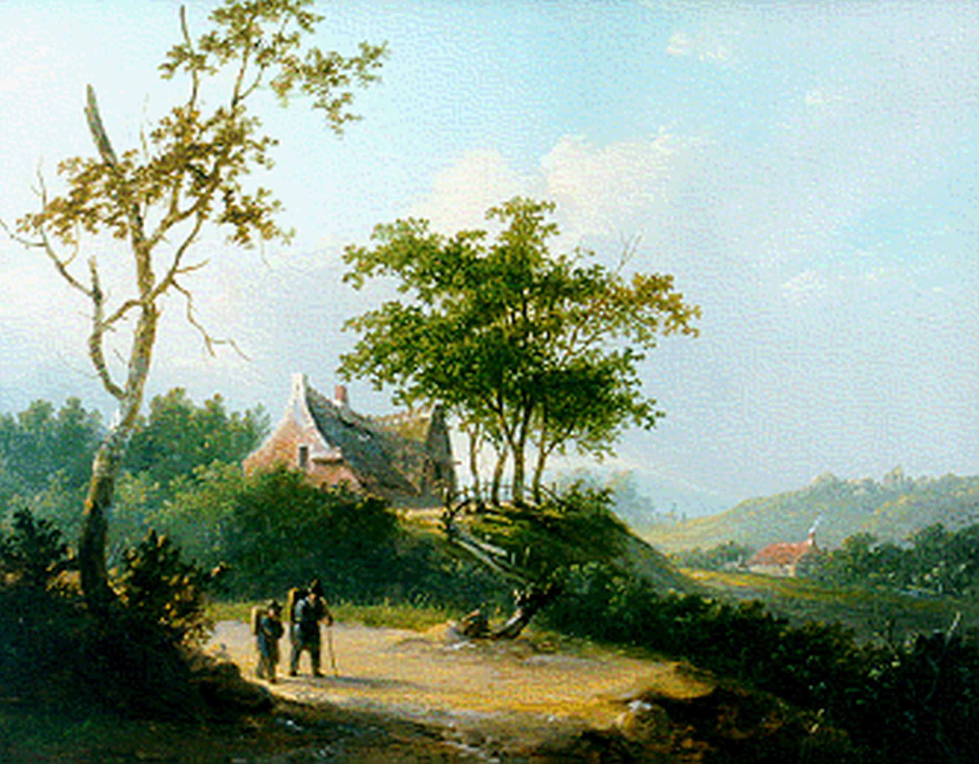 Jacobus van der Stok Kunstwerk • Gemälde • zuvor zu verkaufen Travellers in an extensive summer landscape