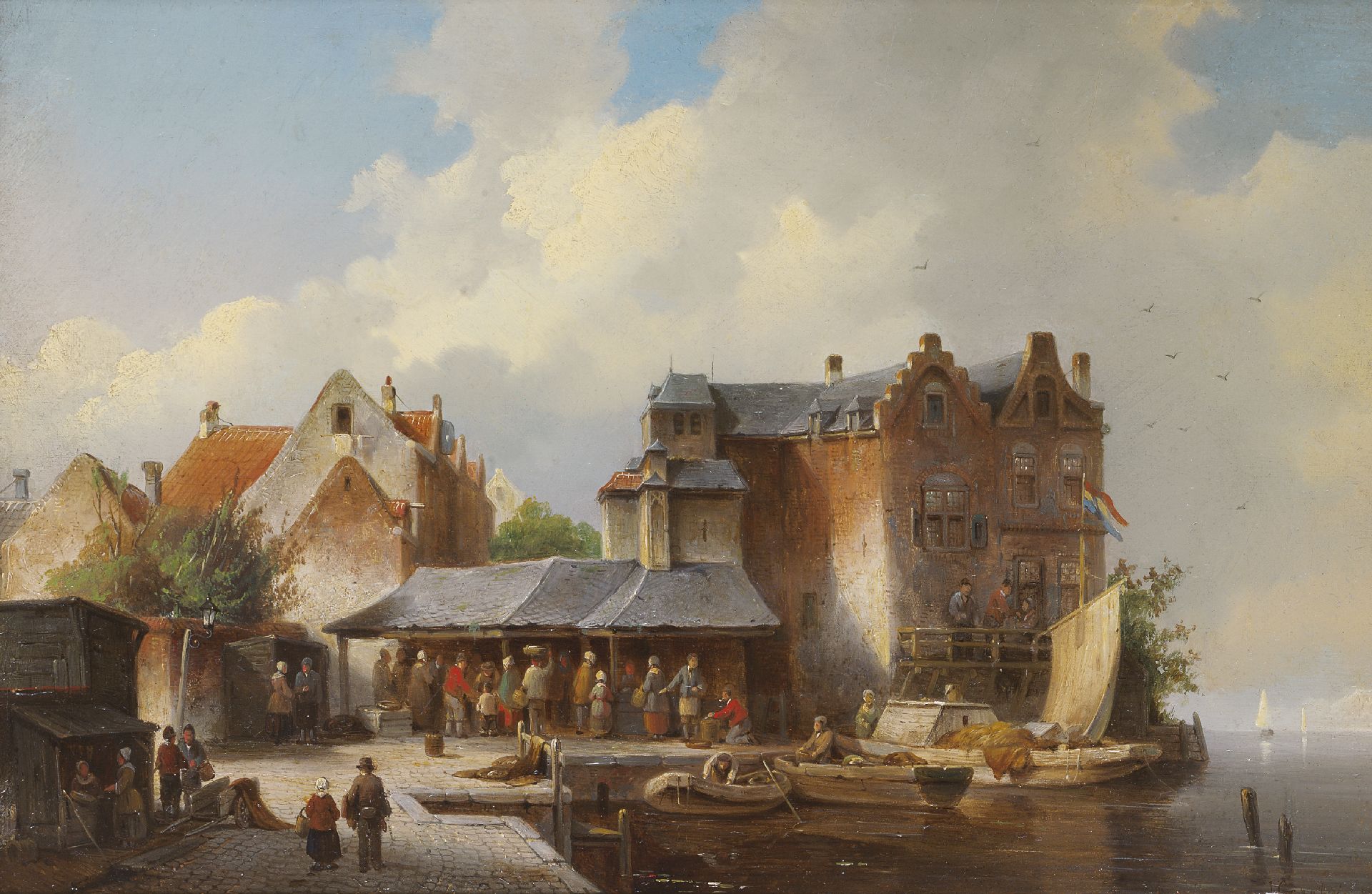 Jacques Carabain Kunstwerk • Gemälde • zuvor zu verkaufen A fish market in a Dutch port
