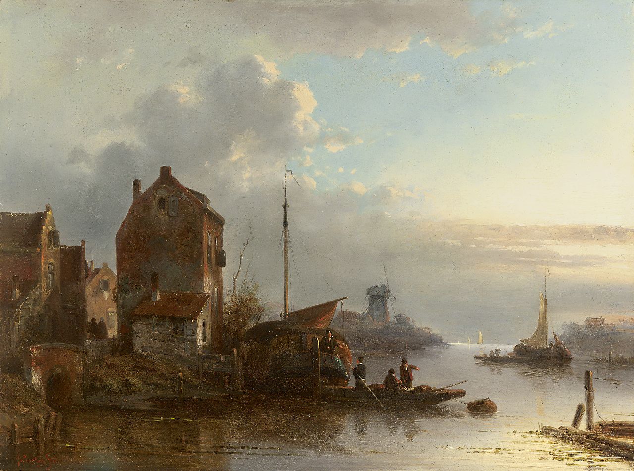 Jacques Carabain Kunstwerk • Gemälde • zuvor zu verkaufen A wall tower with a hay-barge