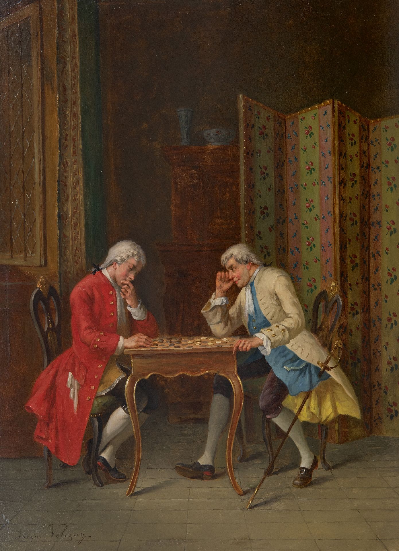 Jacques Velizay Kunstwerk • Gemälde • zu verkaufen Das Damespiel