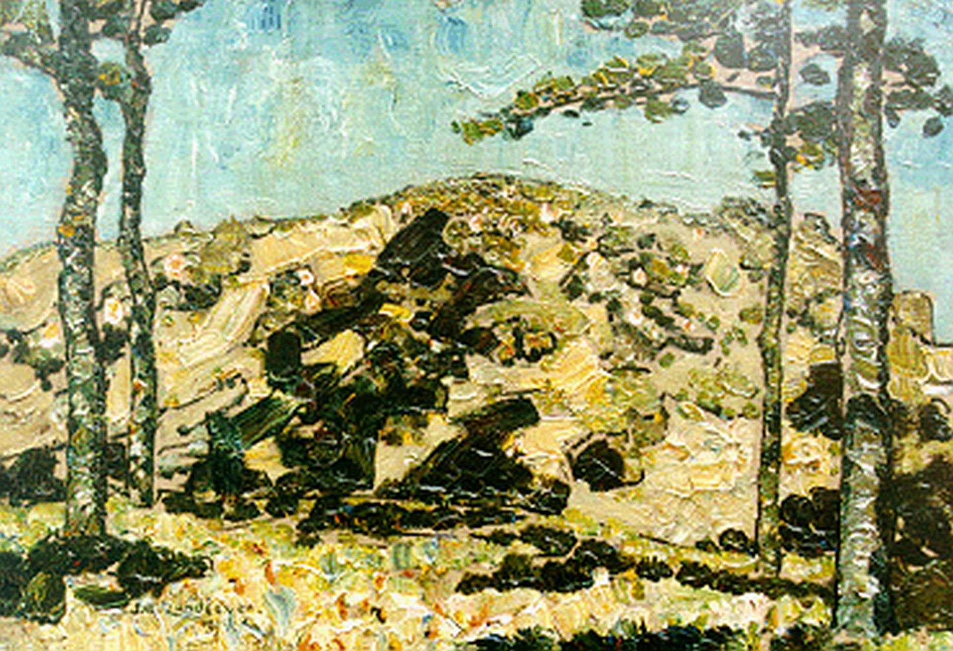 Zandleven J.A.  | Jan Adam Zandleven, Trees in a dune landscape, Öl auf Leinwand auf Holz 35,0 x 50,0 cm, signed l.l. und dated 1914