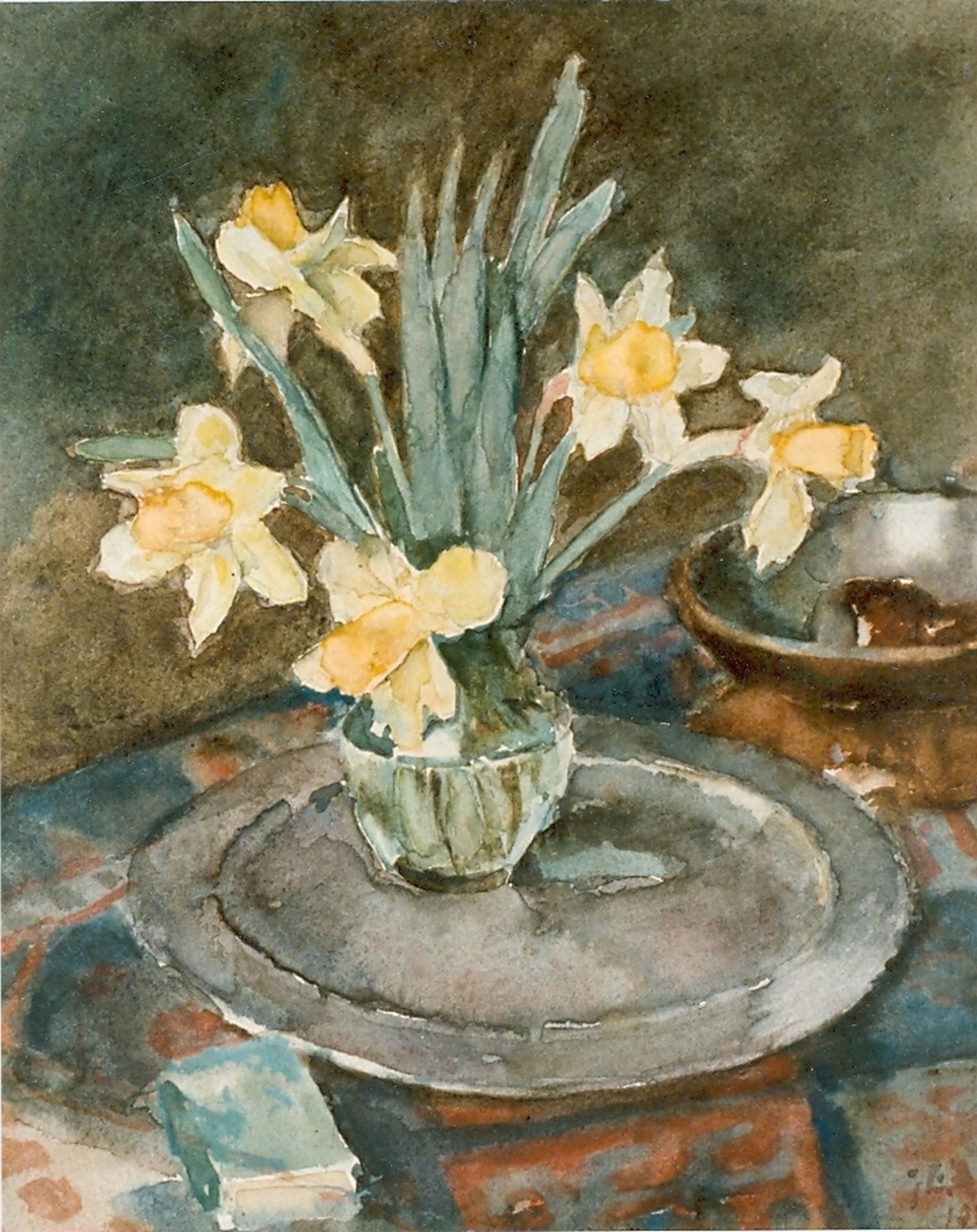 Akkeringa J.E.  | Johannes Evert 'Jan' Akkeringa, Daffodils in a vase, Aquarell auf Papier 31,0 x 26,0 cm, signed l.r. und dated 1952