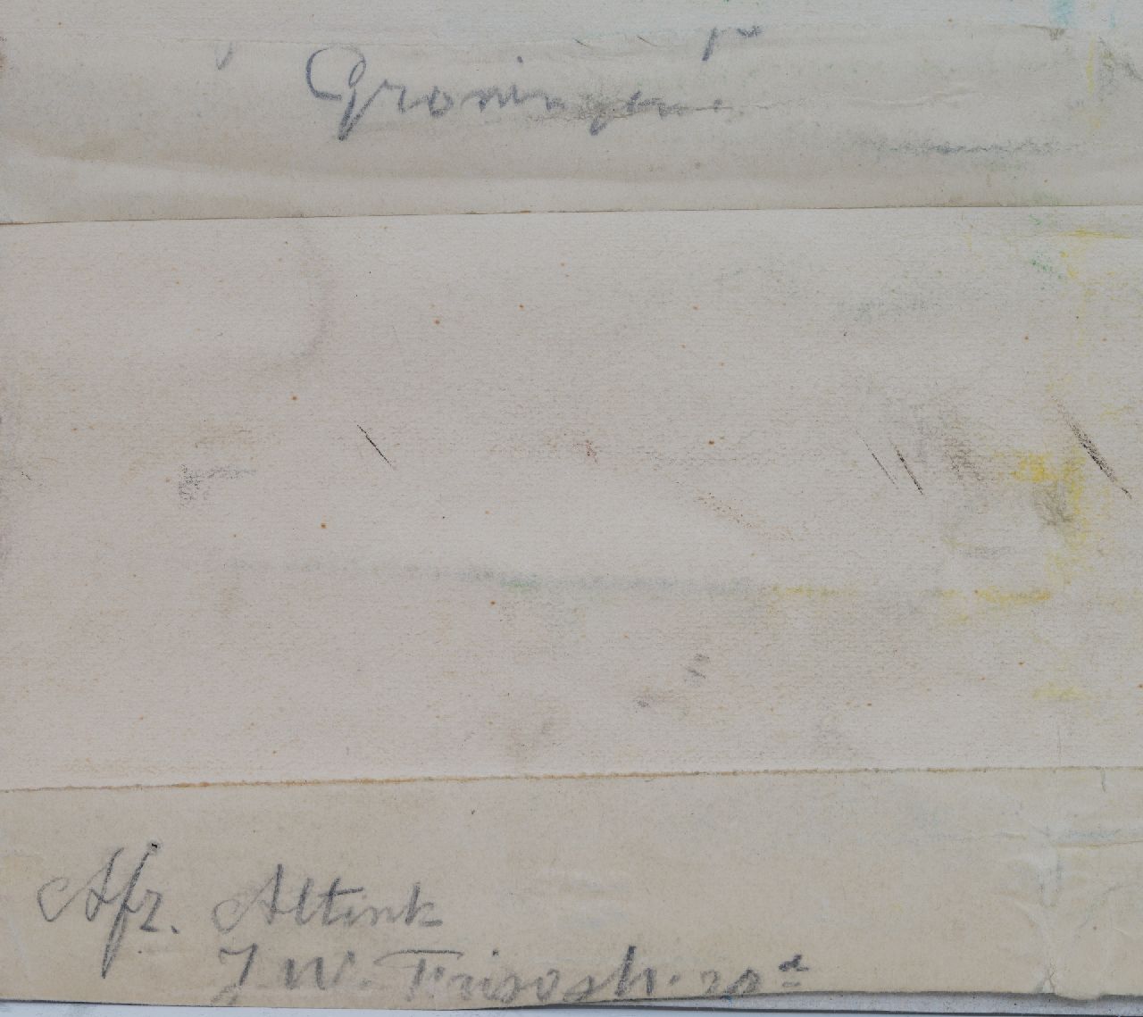 Jan Altink gehörte zu dem Groninger Kunstkreis De Ploeg, wo er sich von den anderen Mitgliedern unterschied durch seine grosse Vorliebe für die Arbeit im Freien. Er malte namentlich LAndschaften und Groninger Dorfansichten, ausserdem auch Stadtansichten, und einige Porträts und Stilleben. Anfangs enthielt seine Palette hauptsächlich graue und grüne Farbtöne, aber nach 1924 fing eine ungestüm expressionistische Periode an. In Wachsfarbe, mit starken, grellen Farben und in vereinfachten Formen registrierte er die Wirklichkeit. Sein späteres Werk hat einen mehr lyrisch-impressionistischen Charakter.