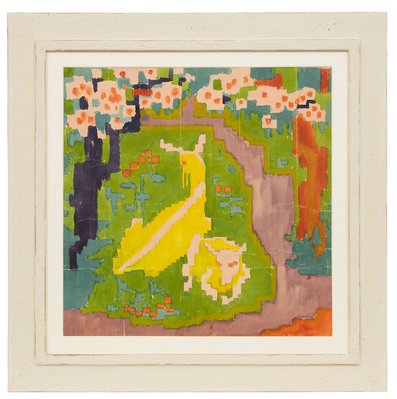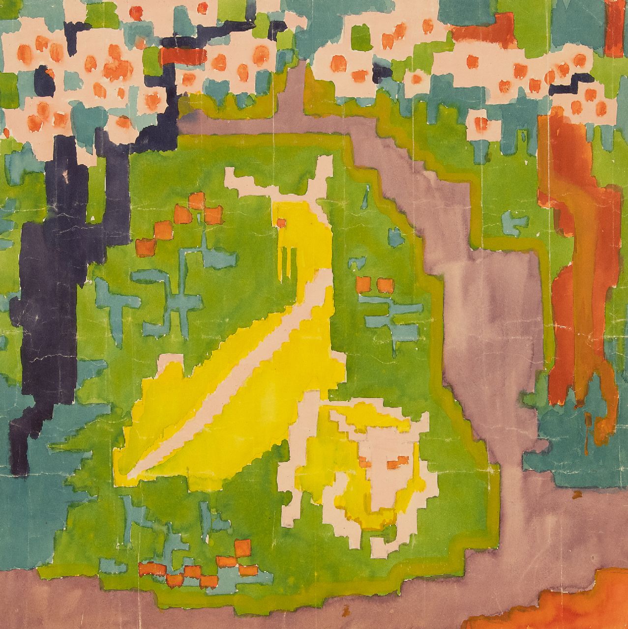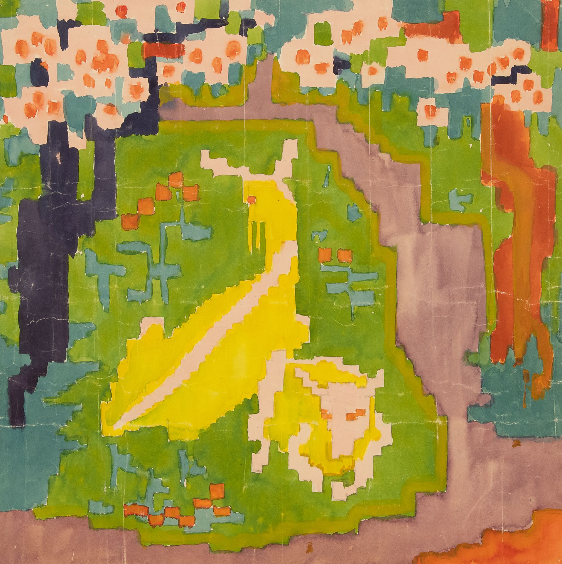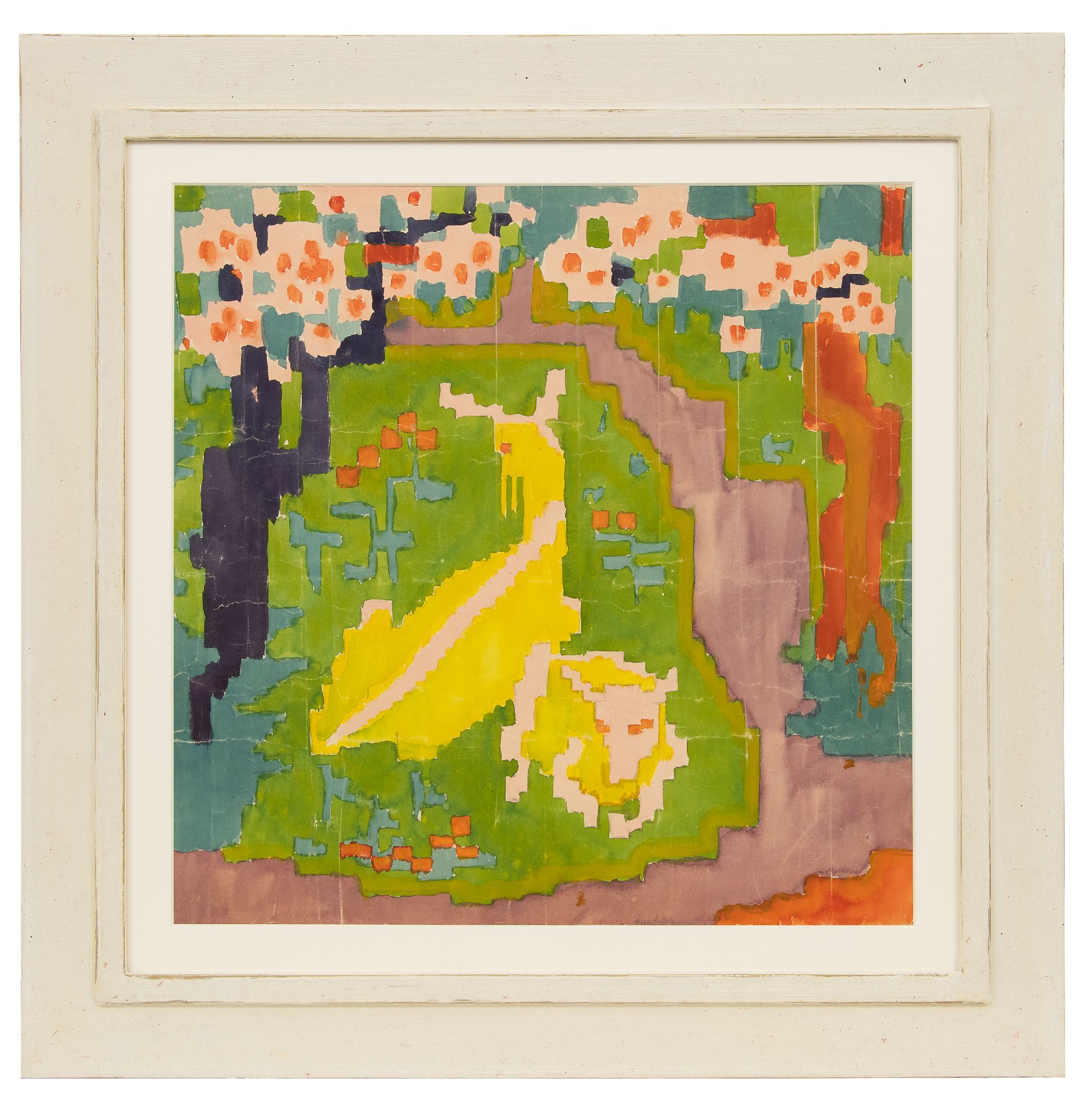 Jan Altink Kunstwerk • Aquarell • Zeichnung • zu verkaufen Entwurf für einen Wandteppich: Zwei Ziegen