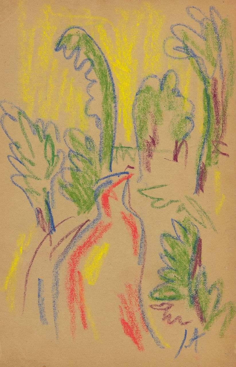 Kreide auf Papier 17,4 x 11,3 cm, Unterzeichnet u.r. mit Initialen