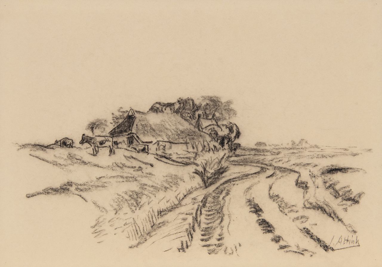 Jan Altink Kunstwerk • Aquarell • Zeichnung • zuvor zu verkaufen Landstraße in Wierumerschouw