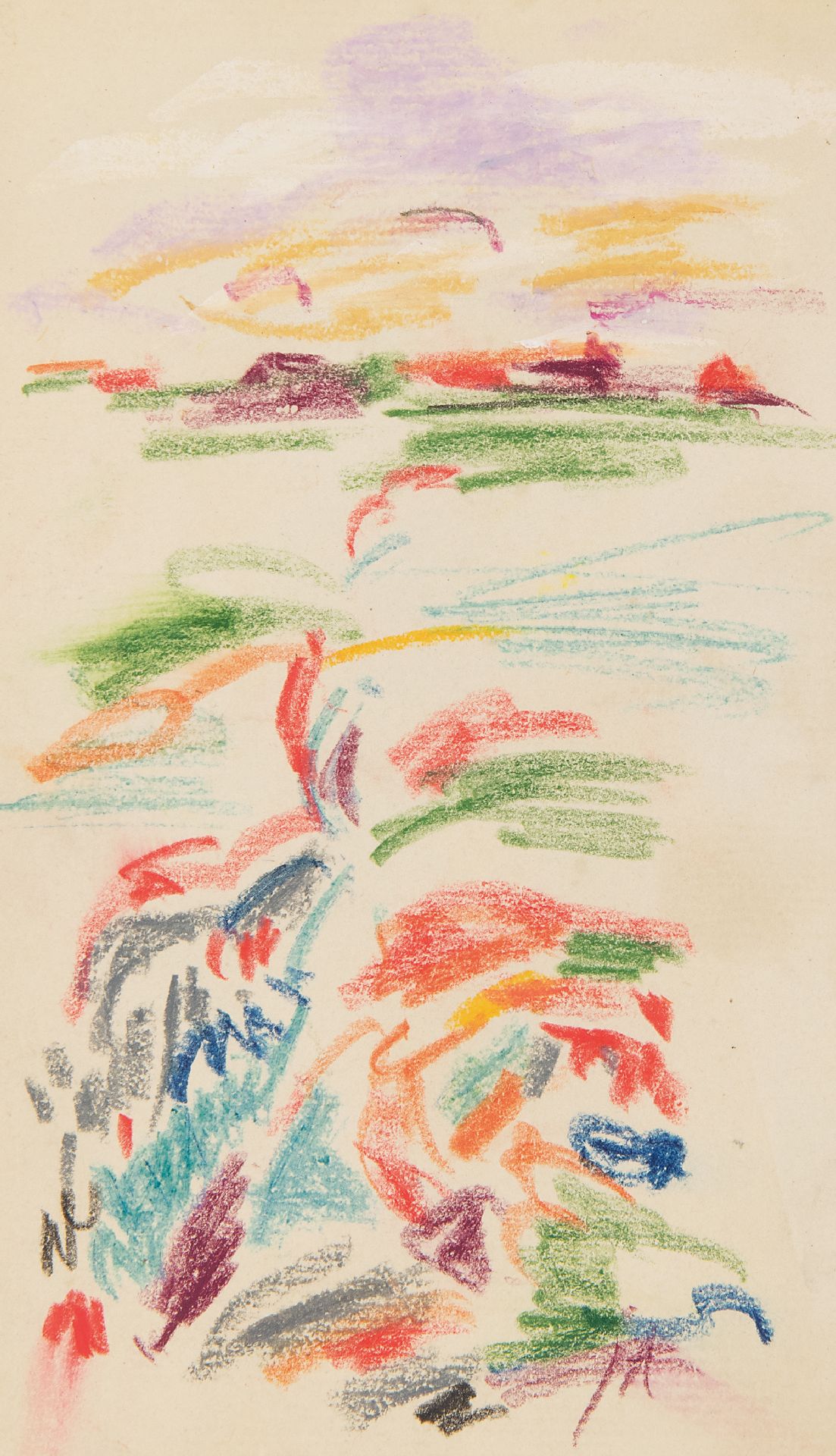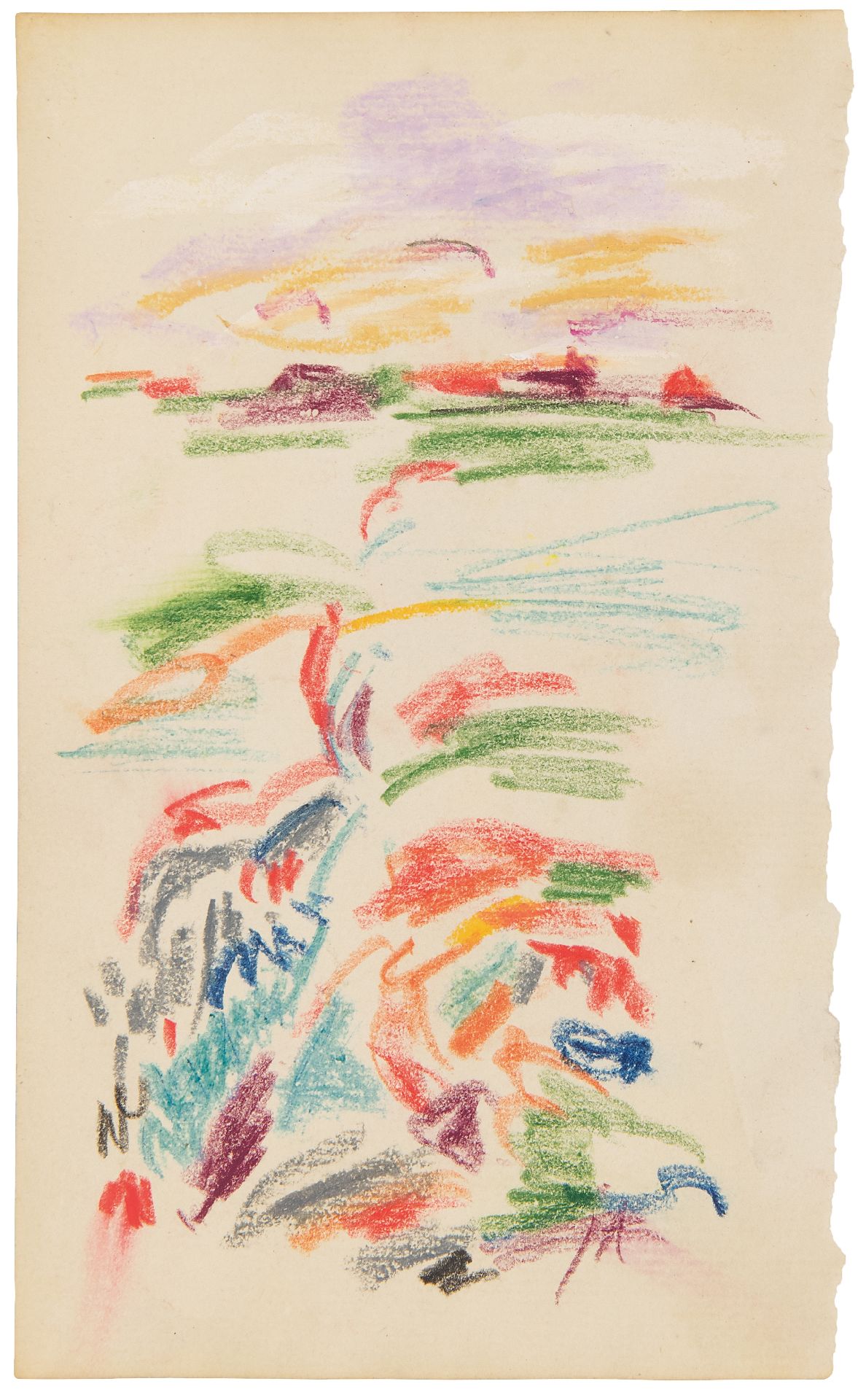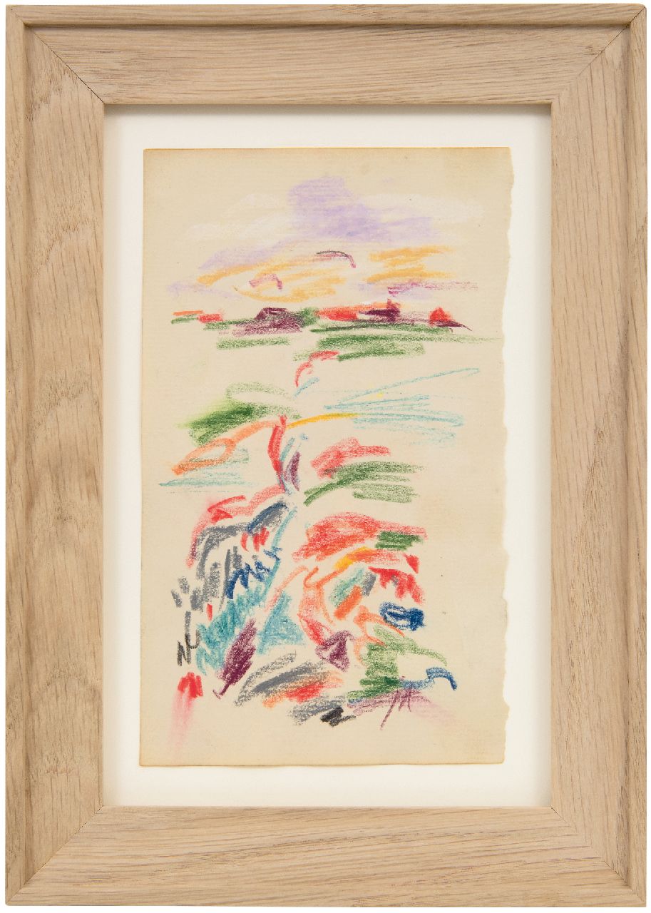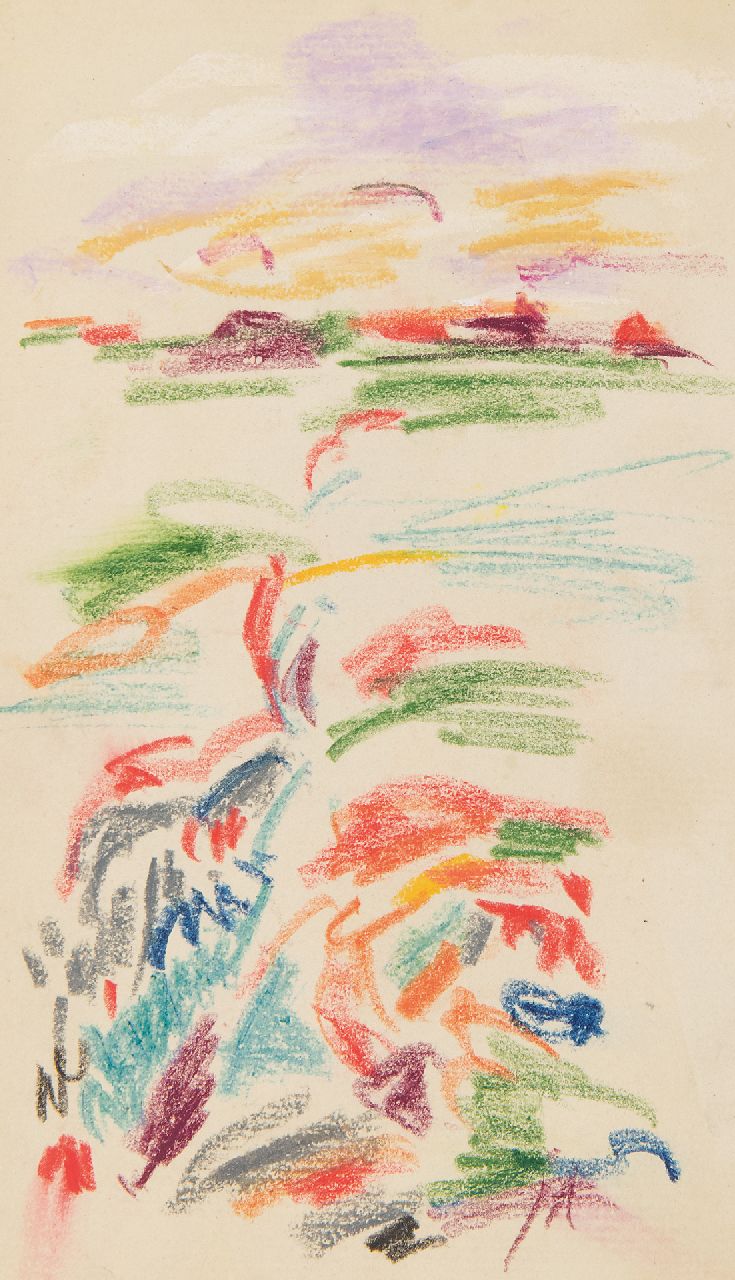 Jan Altink | Landschaft mit rotem Weg, Kreide auf Papier, 17,4 x 11,3 cm, Unterzeichnet u.r. mit Initialen
