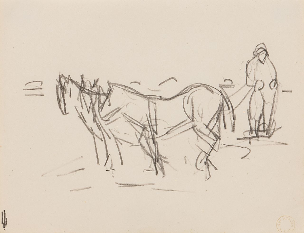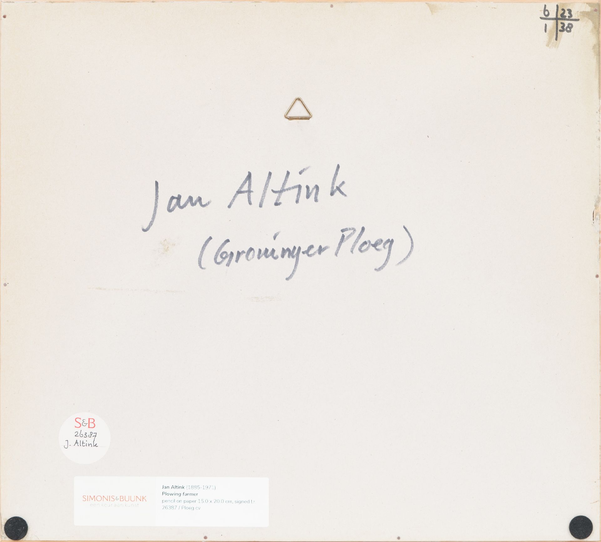 Jan Altink Kunstwerk • Aquarell • Zeichnung • zu verkaufen Pflügender Bauer