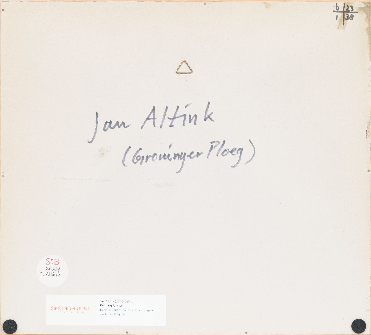 Jan Altink gehörte zu dem Groninger Kunstkreis De Ploeg, wo er sich von den anderen Mitgliedern unterschied durch seine grosse Vorliebe für die Arbeit im Freien. Er malte namentlich LAndschaften und Groninger Dorfansichten, ausserdem auch Stadtansichten, und einige Porträts und Stilleben. Anfangs enthielt seine Palette hauptsächlich graue und grüne Farbtöne, aber nach 1924 fing eine ungestüm expressionistische Periode an. In Wachsfarbe, mit starken, grellen Farben und in vereinfachten Formen registrierte er die Wirklichkeit. Sein späteres Werk hat einen mehr lyrisch-impressionistischen Charakter.