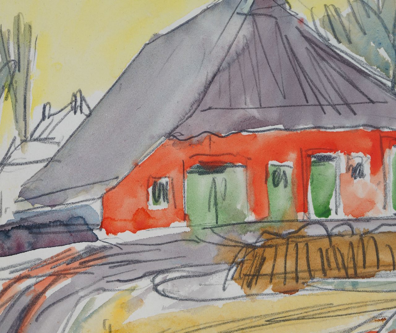 Jan Altink Kunstwerk • Aquarell • Zeichnung • zu verkaufen Rote Bauernhof, Groningen