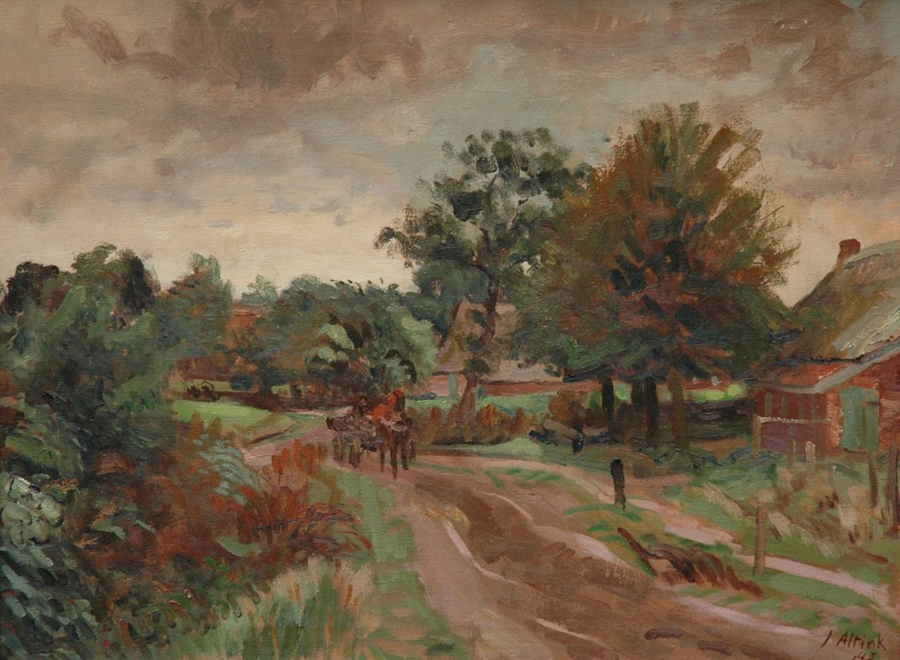 Jan Altink gehörte zu dem Groninger Kunstkreis De Ploeg, wo er sich von den anderen Mitgliedern unterschied durch seine grosse Vorliebe für die Arbeit im Freien. Er malte namentlich LAndschaften und Groninger Dorfansichten, ausserdem auch Stadtansichten, und einige Porträts und Stilleben. Anfangs enthielt seine Palette hauptsächlich graue und grüne Farbtöne, aber nach 1924 fing eine ungestüm expressionistische Periode an. In Wachsfarbe, mit starken, grellen Farben und in vereinfachten Formen registrierte er die Wirklichkeit. Sein späteres Werk hat einen mehr lyrisch-impressionistischen Charakter.