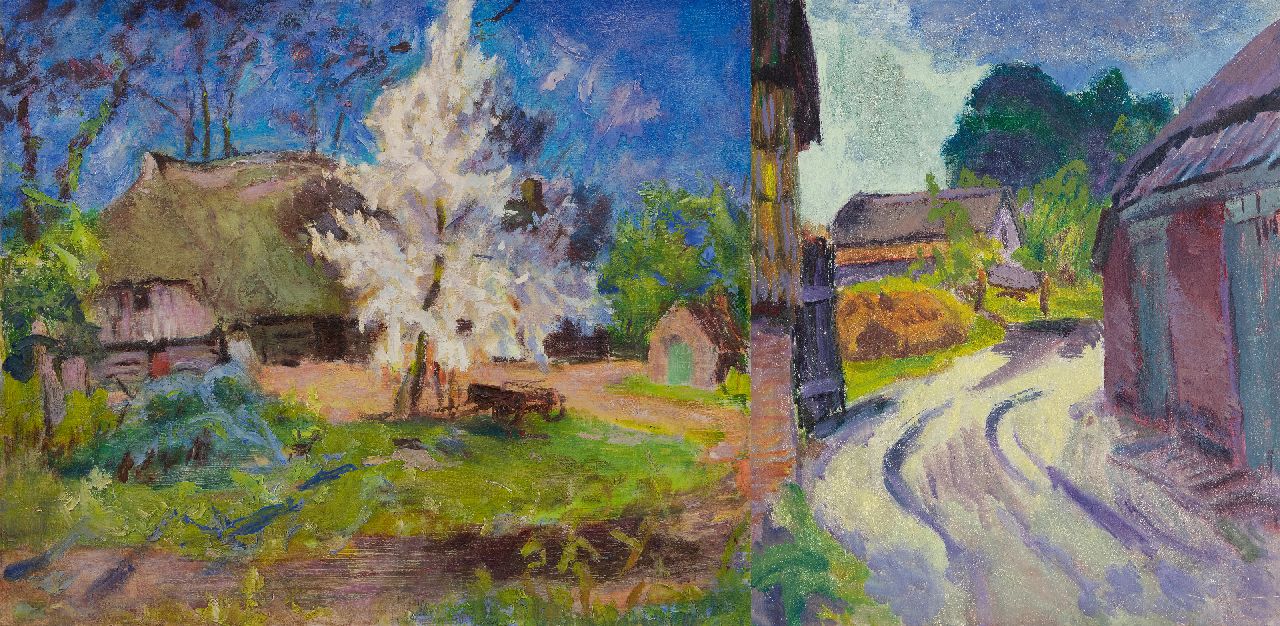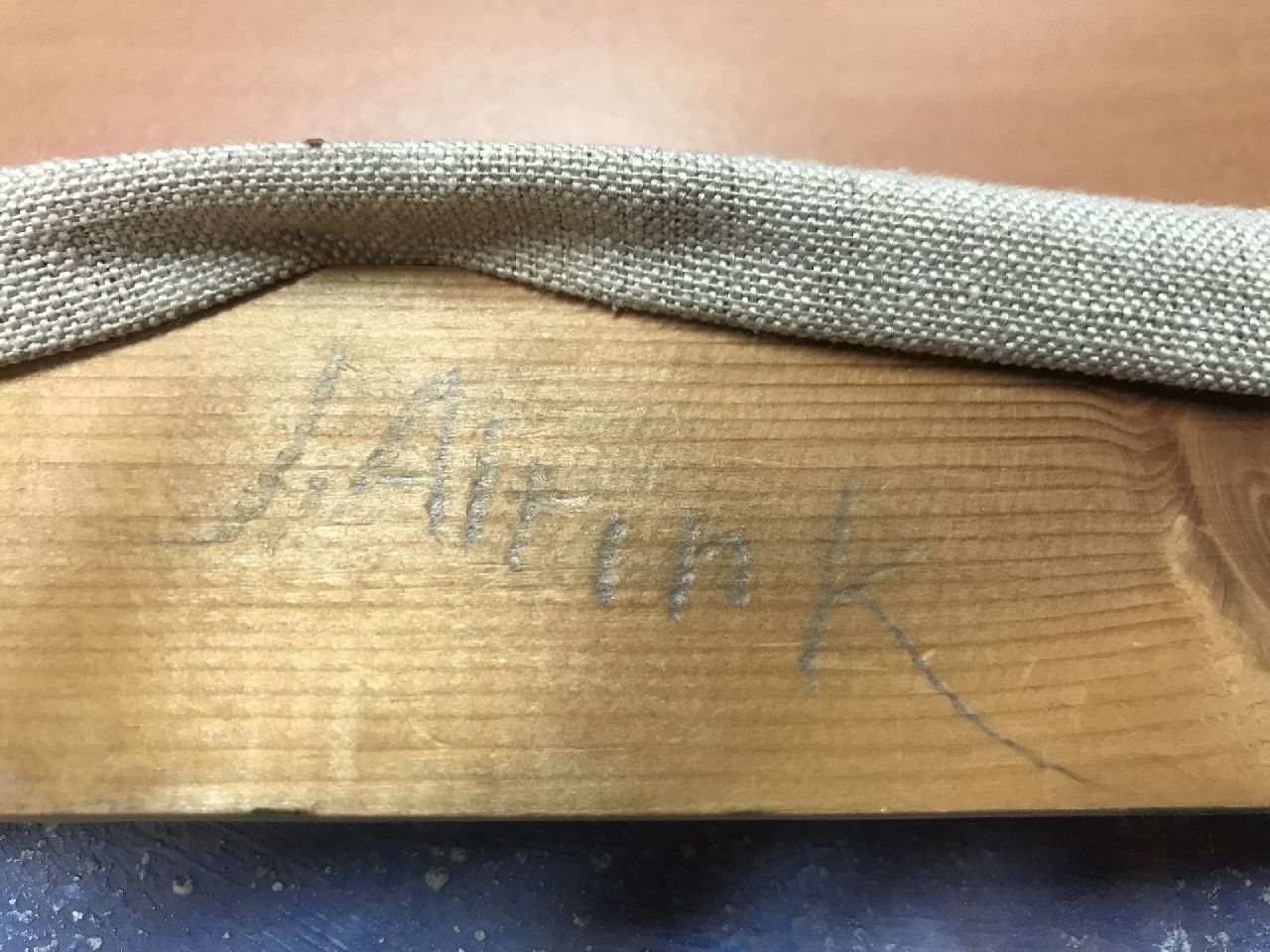 Jan Altink Kunstwerk • Gemälde • zuvor zu verkaufen Bauernhof in Essen, Groningen; verso: Landweg in Essen
