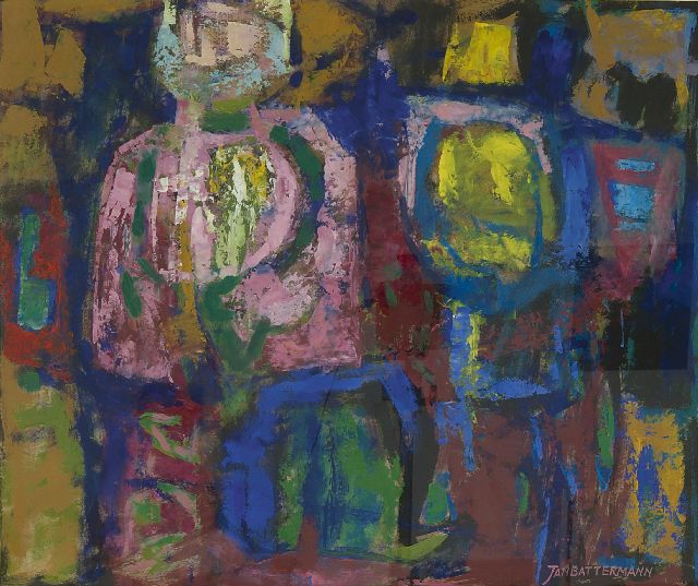 Jan Battermann wurde 1909 in Amsterdam geboren und besuchte dort die Akademie. Er machte sein debüt als figurativer Maler. Durch eine stark impressionistische Zeit gelangte er in den sechziger Jahren zu nicht figurativen, meist abstrakten Kompositionen großer Dimension, in Gouache und Ölfarbe. 1955 begann Batterman auch auf grafischer Ebene zu experimentieren.