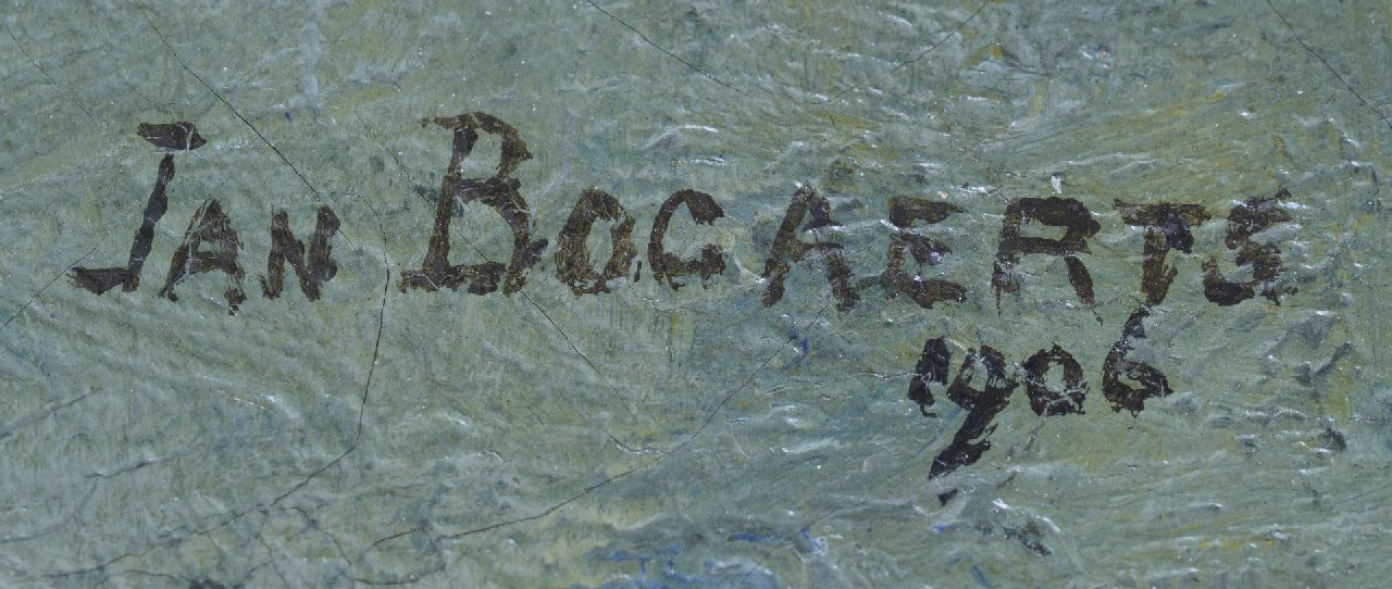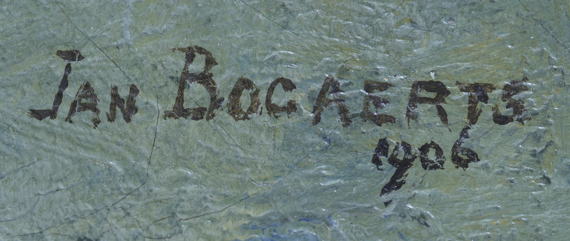 Nach seiner Ausbildung an den Akademien in Den Bosch und Antwerp malte Jan Bogaerts anfangs träumerische Figurstücke und märchenhafte Parke und Gärten in dem Stil des Symbolismus. Hier ist der Einfluss seines Lehrers in Den Bosch Antoon van Welie noch nachweisbar. Ab 1915 malte er namentlich Stilleben, sowohl von Blumen als auch von Gegenständen. Diese sind realistischer ausgemalt als die Landschaften, aber genauso stimmungsvoll und verträumt. Für seine Kompositionen benutzte Bogaerts sowohl tägliche Attributen als auch antike Gegenstände, wie Karaffen, Flaschen, Schalen, bemalte Kistchen und Schmucksachen, die er gegen einen schlichten Hintergrund setzte. Seine Blumenstilleben sind bemerkenswert durch ihre originelle Komposition und wunderbare Farben.