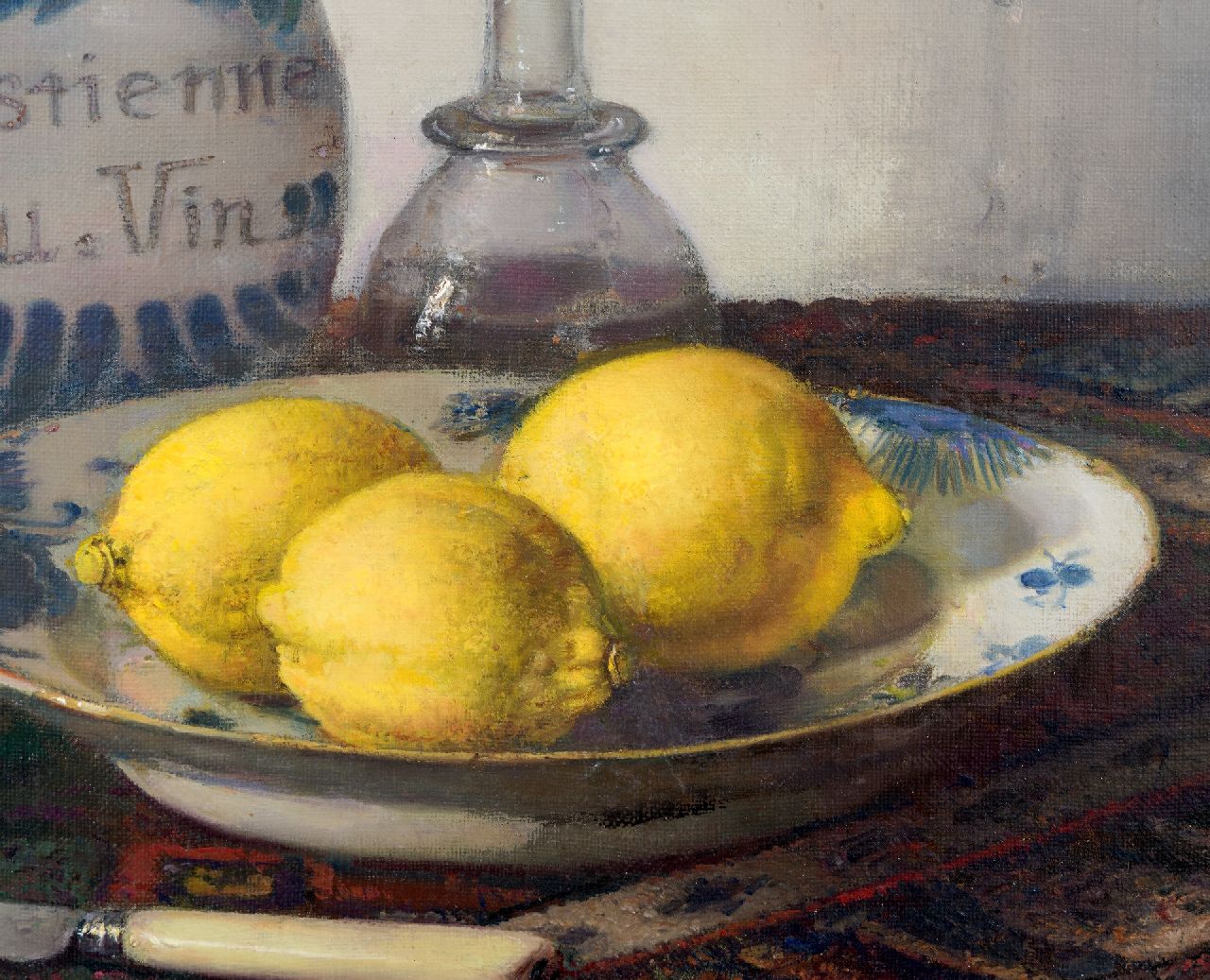 Stillleben mit Römer, Steinkrug und Teller mit Zitronen