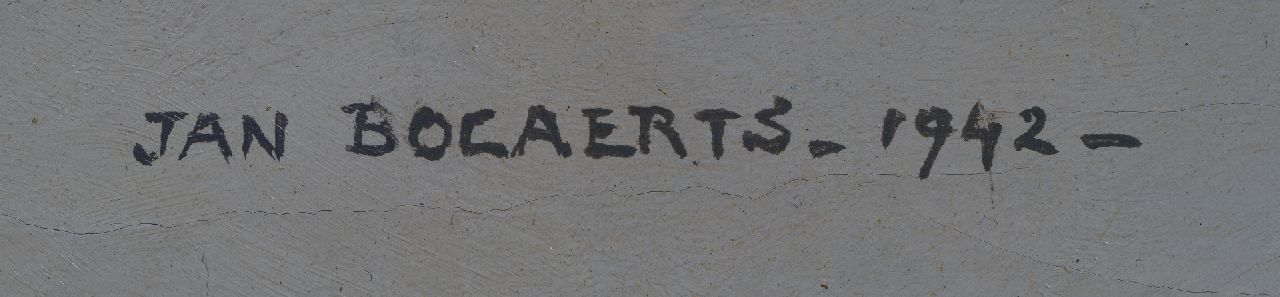 Nach seiner Ausbildung an den Akademien in Den Bosch und Antwerp malte Jan Bogaerts anfangs träumerische Figurstücke und märchenhafte Parke und Gärten in dem Stil des Symbolismus. Hier ist der Einfluss seines Lehrers in Den Bosch Antoon van Welie noch nachweisbar. Ab 1915 malte er namentlich Stilleben, sowohl von Blumen als auch von Gegenständen. Diese sind realistischer ausgemalt als die Landschaften, aber genauso stimmungsvoll und verträumt. Für seine Kompositionen benutzte Bogaerts sowohl tägliche Attributen als auch antike Gegenstände, wie Karaffen, Flaschen, Schalen, bemalte Kistchen und Schmucksachen, die er gegen einen schlichten Hintergrund setzte. Seine Blumenstilleben sind bemerkenswert durch ihre originelle Komposition und wunderbare Farben.