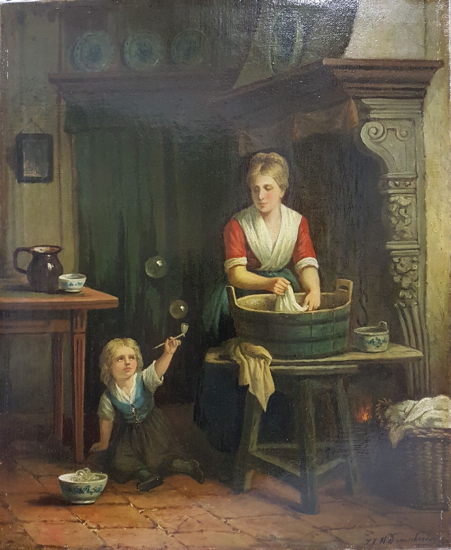 Jan Damschreuder wurde 1825 in Amsterdam geboren, wo um die Mitte des 19. Jahrhunderts die Figuren-und Geschichtsmalerei hohes Ansehen genossen. Er spezialisierte denn auch auf die Malerei von Szenen aus der niederländischen Geschichte und erzählende Innenräume mit Figuren. Diese Werke verlieh er treffende Titel wie 'Der Rückkehr des Seemannes‘ und 'Der Besuch der Grossmutter‘. Namentlich seine Dar stellungen mit Kindern waren sehr geliebt.