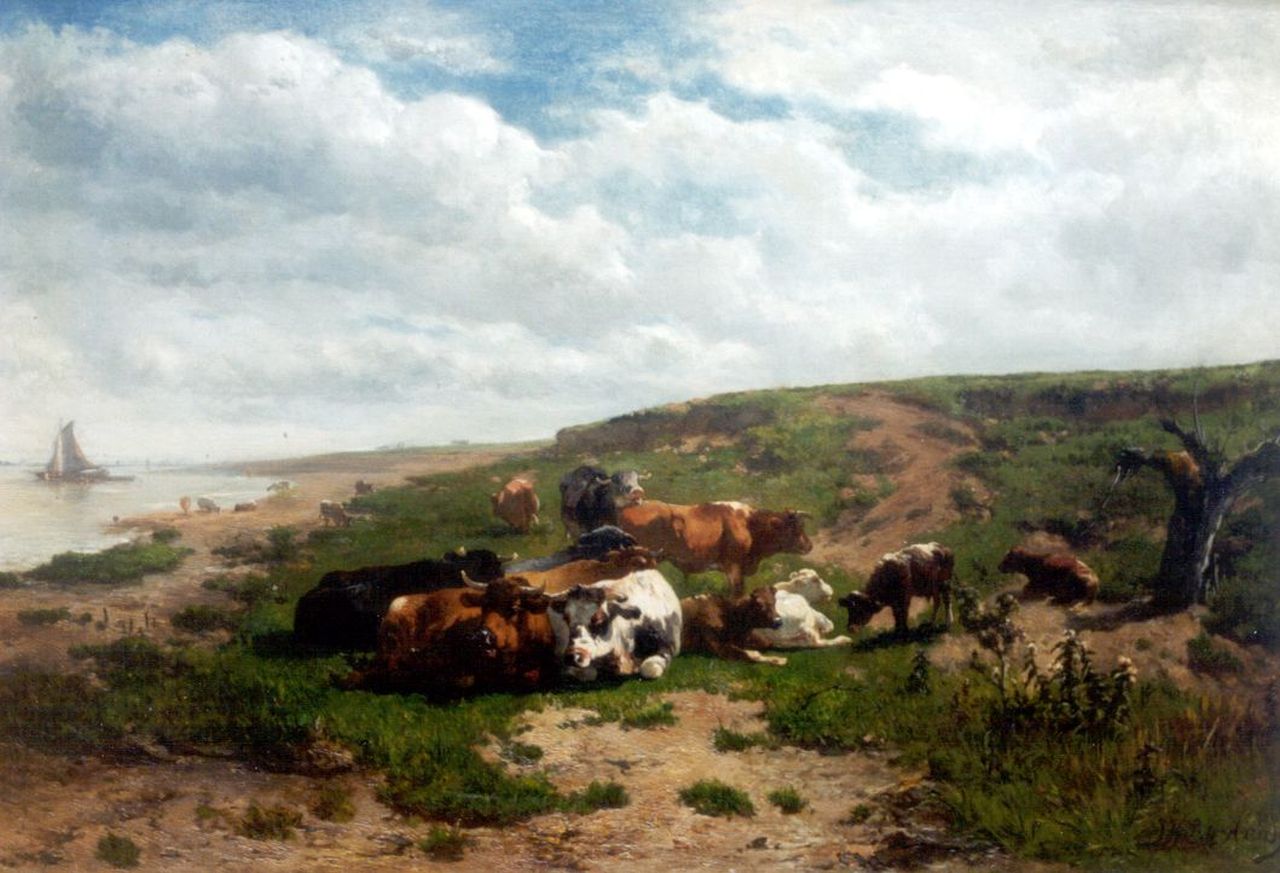 Jan de Haas Kunstwerk • Gemälde • zuvor zu verkaufen Cows in a River Landscape