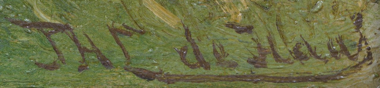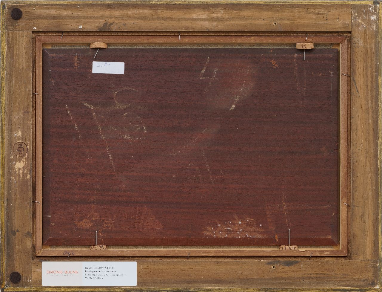 Jan de Haas malte hervorragende Viehstücke: wohlhabend rot- und schwarzbuntes Vieh oder andere stämmig modellierte Tiere in einer Landschaft. Das Vieh war für ihn aber Hauptsache, die Landschaften kamen an die zweite Stelle. Nach dem Vorbild von Willem Roelofs, den er um 1853 in Oosterbeek kennengelernt hatte, zog De Haas 1857 um nach Brüssel. Von dort kam er regelmässig nach den Niederlanden um sich Inspiration zu holen. Von ihm ist bekannt, dass er das Werk von Willem Roelofs, P.J.C. Gabriel und J.TH. Abels mit Vieh versehen hat.