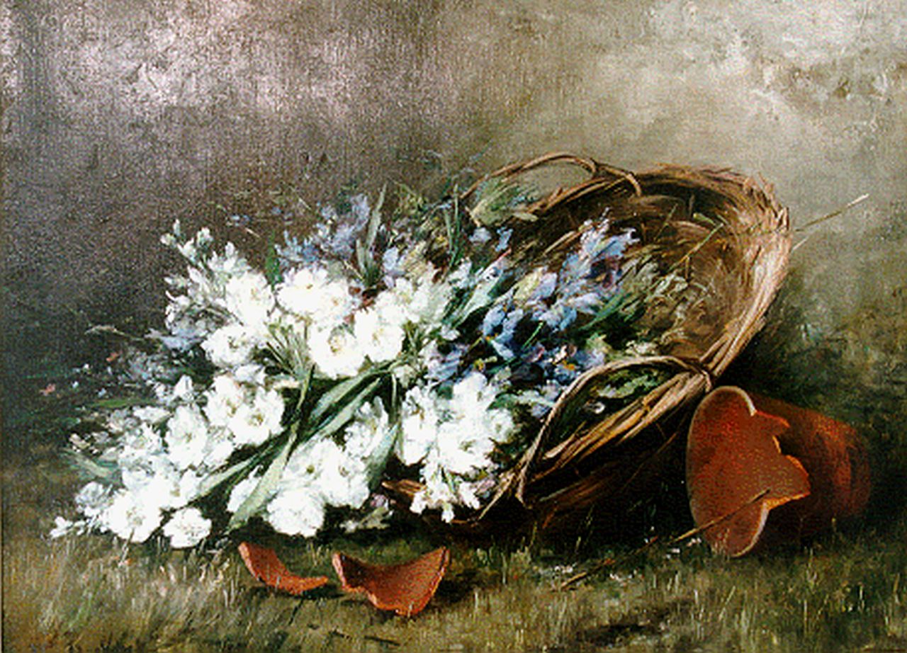 Jan Deckers Kunstwerk • Gemälde • zuvor zu verkaufen Flowers in a basket
