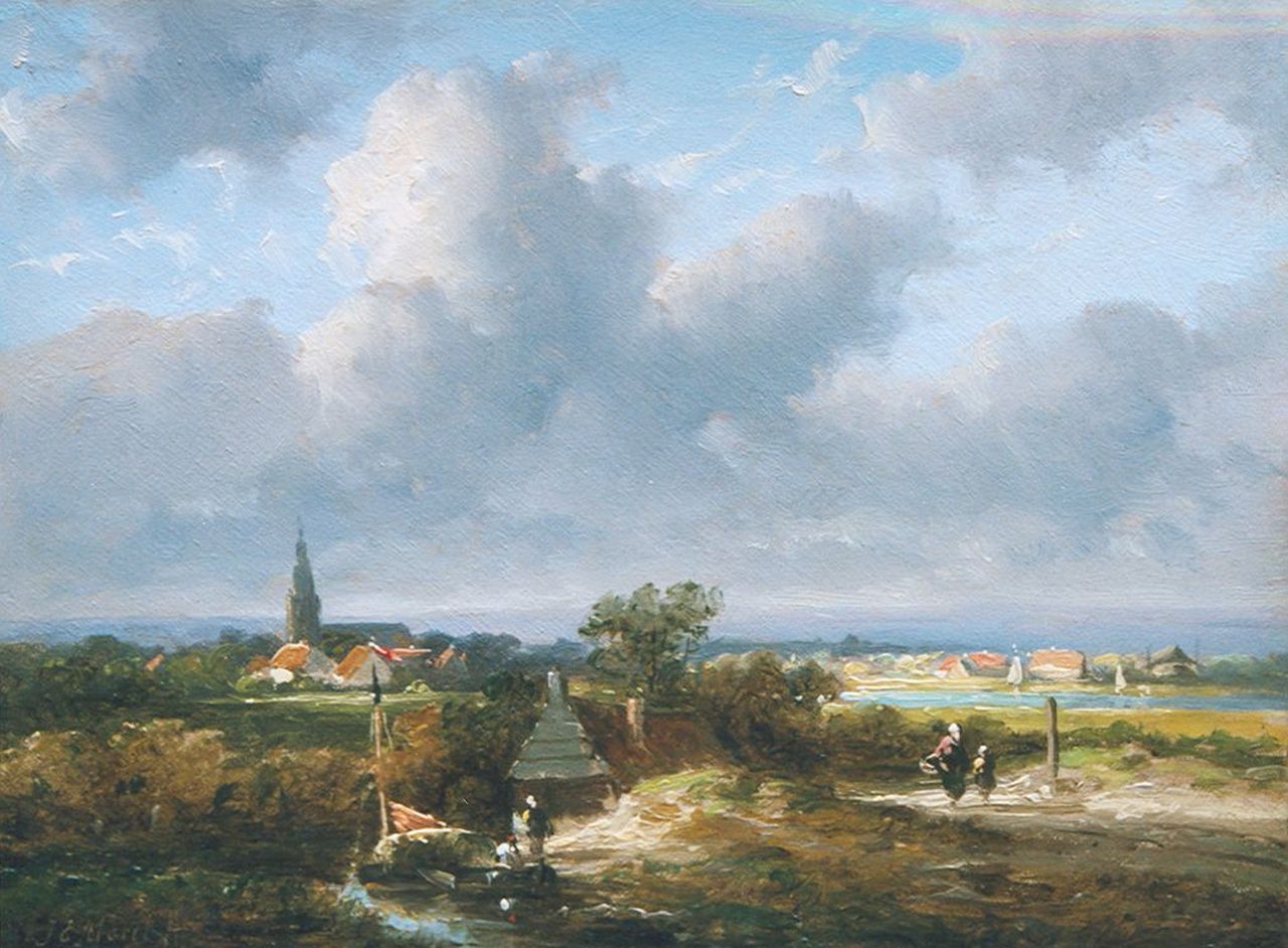 Jan Evert Morel II lebte und arbeitete hauptsächlich in Amsterdam. Er war der Sohn und wahrscheinlich ein Schüler von C.J. Morel, Maler von Seestücken und Porträts. Jan Evert Morel II konzentrierte sich hauptsächlich auf die Malerei romantischer Landschaften, die oft vom belgischen Maler Eugène Verboeckhoven dekoriert wurden. Für kurze Zeit arbeitete er auch im malerischen Oosterbeek, wo viele talentierte Künstler im Freien in der Tradition der französischen Barbizon-Maler arbeiteten. Seine idyllischen Landschaften sind oft klein und auf Tafel gemalt.