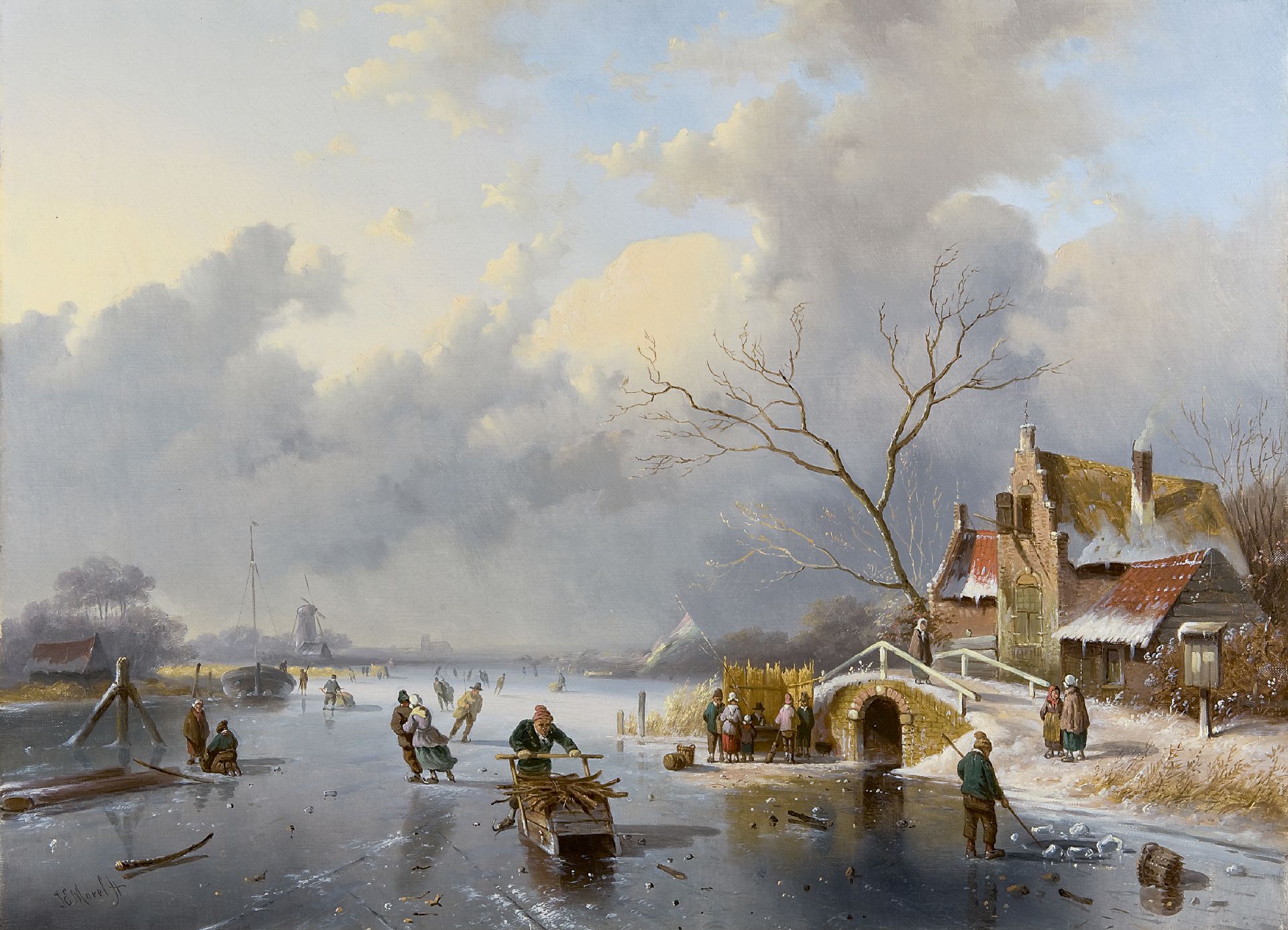 Jan Evert Morel II Kunstwerk • Gemälde • zuvor zu verkaufen A winter scene with skaters