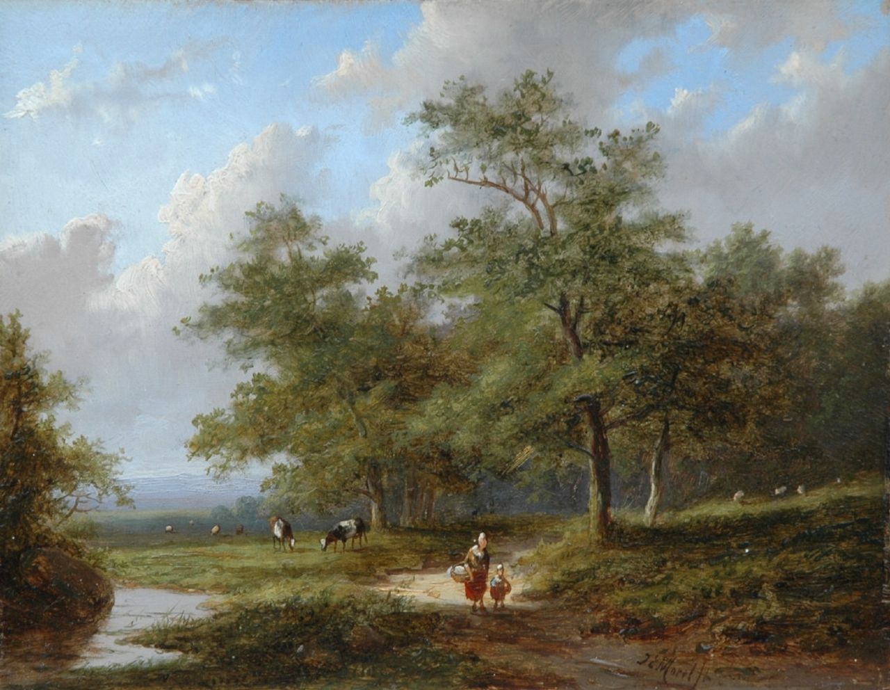 Jan Evert Morel II Kunstwerk • Gemälde • zuvor zu verkaufen Mother and child on a path in a wooded landscape