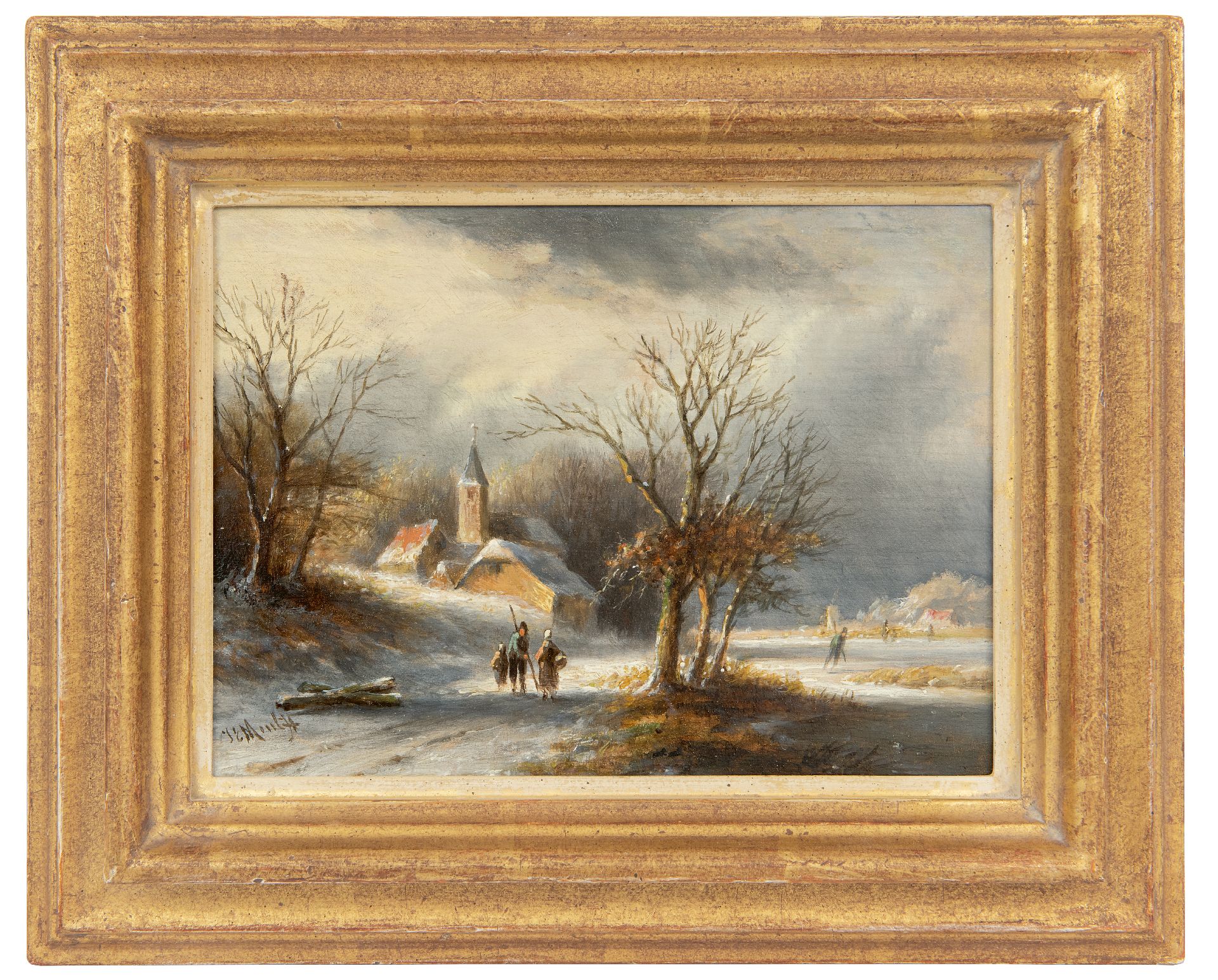 Jan Evert Morel II Kunstwerk • Gemälde • zu verkaufen Schneelandschaft mit Schlittschuhläufern und Wanderern
