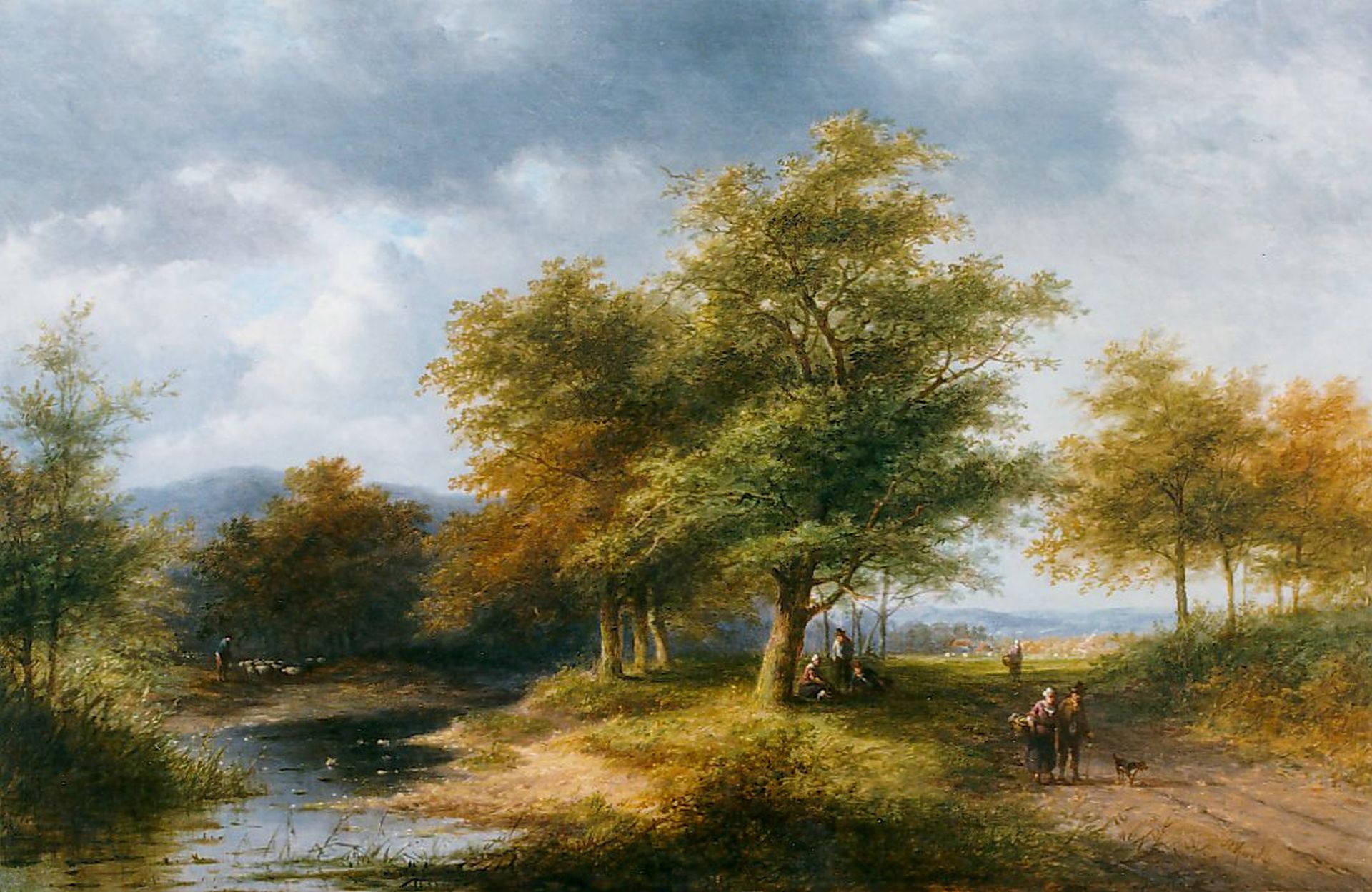 Travellers in a wooded landscape