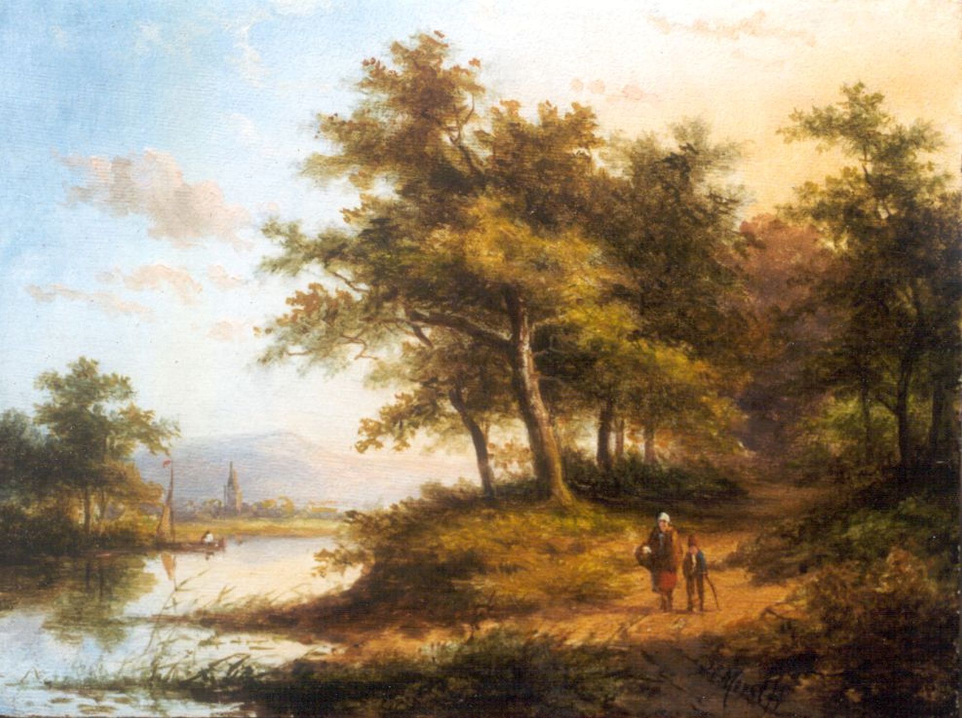 Jan Evert Morel II Kunstwerk • Gemälde • zuvor zu verkaufen Travellers on a path in a wooded landscape