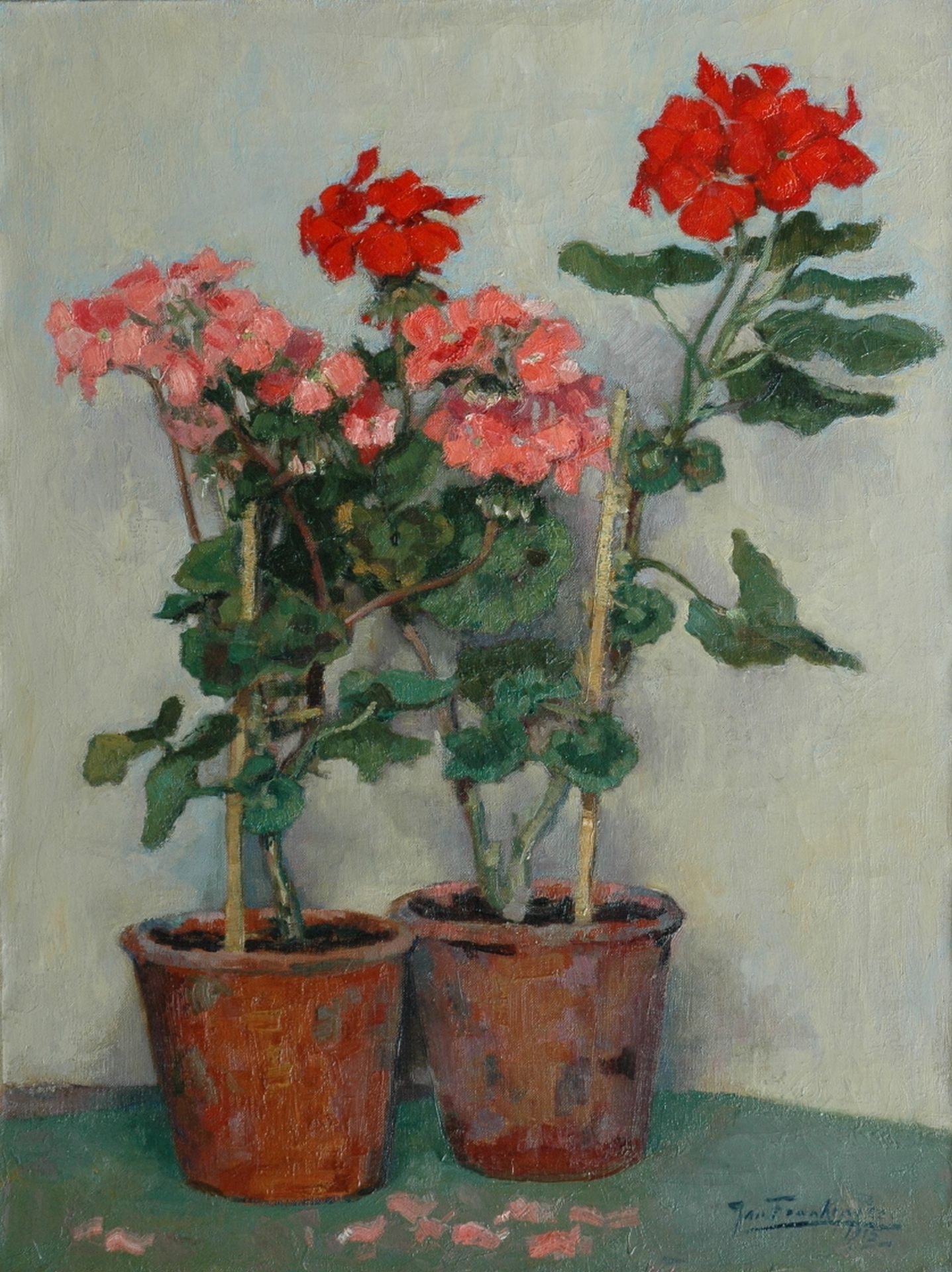 Jan Franken Kunstwerk • Gemälde • zuvor zu verkaufen Geranium in flowerpots