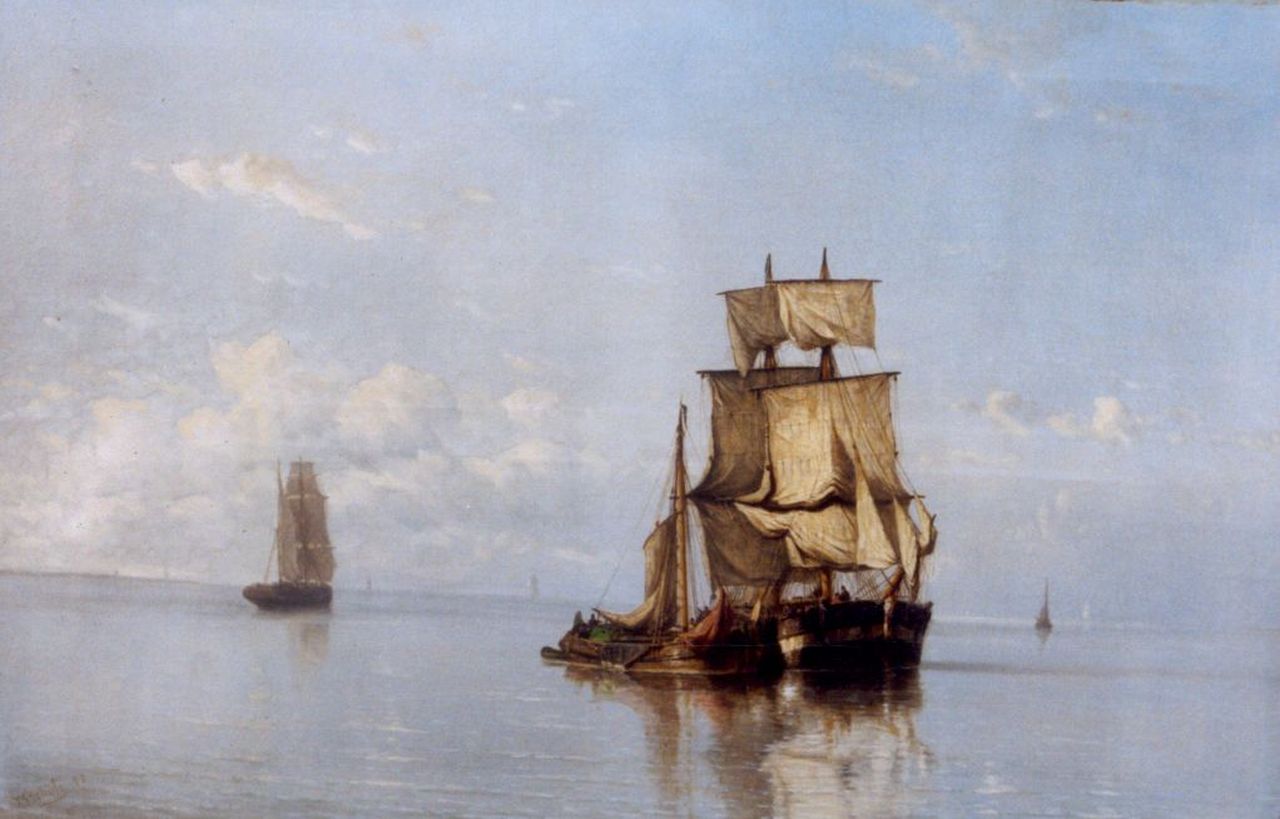 Jan Frederik Schütz Kunstwerk • Gemälde • zuvor zu verkaufen Shipping in a calm